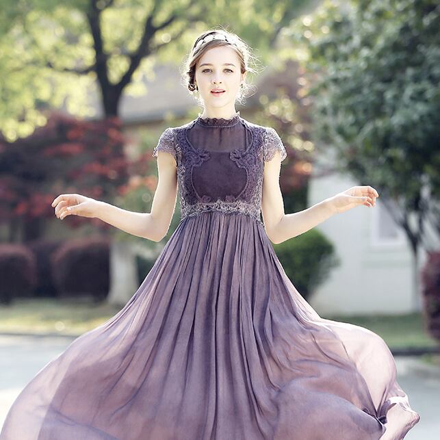 ワンピース フレアワンピース ワンピドレス 膝下 ミモレ ミモレ丈 ロング ロング丈 袖あり フレンチスリーブ ハイネック Aライン 切り替えデザイン レース 刺繍 チュール シフォン 透け感 シースルー 大人可愛い おしゃれ お洒落 ラブリー キュート ガーリー エレガント 主役級 存在感 とろみ感 春 夏 誕生日 謝恩会 二次会 10代 20代 30代 レディース 女性用 デート 女子会 パーティー イベント ホテル レストラン モテ インスタ映え S M L XL 2XL 黒 ブラック 紫 パープル