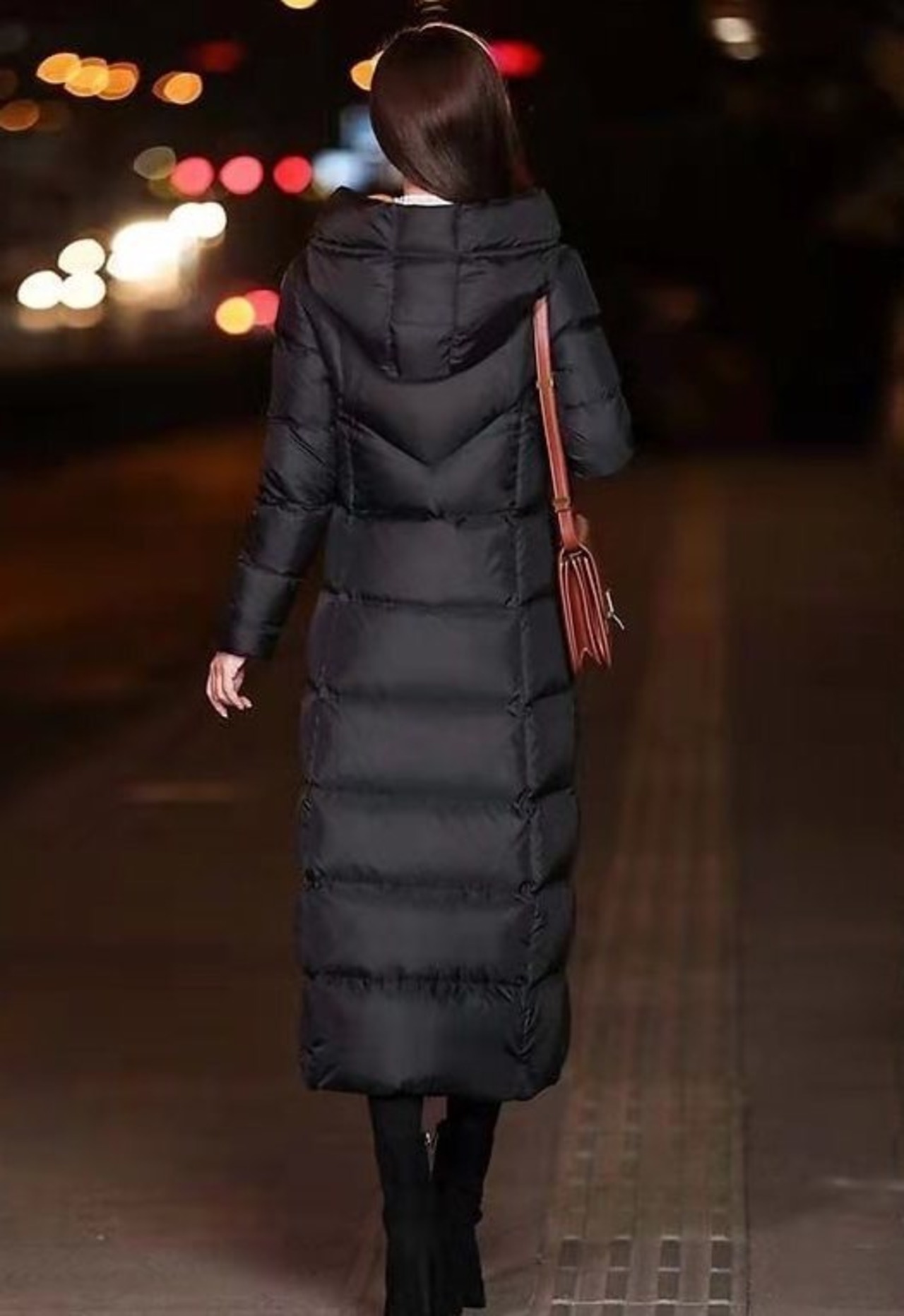アウター ダウンコート 膝下 ミモレ ロング 袖あり 長袖 細身 ストレート フード付き ファスナー ポケット きれいめ シンプル カジュアル 大人 上品 おしゃれ お洒落 かっこいい 大人女子 こなれ感 クール 存在感 秋 冬 2022 2023 10代 20代 30代 40代 50代 60代 レディース 女性用 ママ マタニティ 通勤 学生 通学 お出かけ 公園デビュー 休日 旅行 スタイル 楽ちん 暖かい 防寒 M L XL 2XL 3XL 4XL 黒 ブラック 赤 レッド