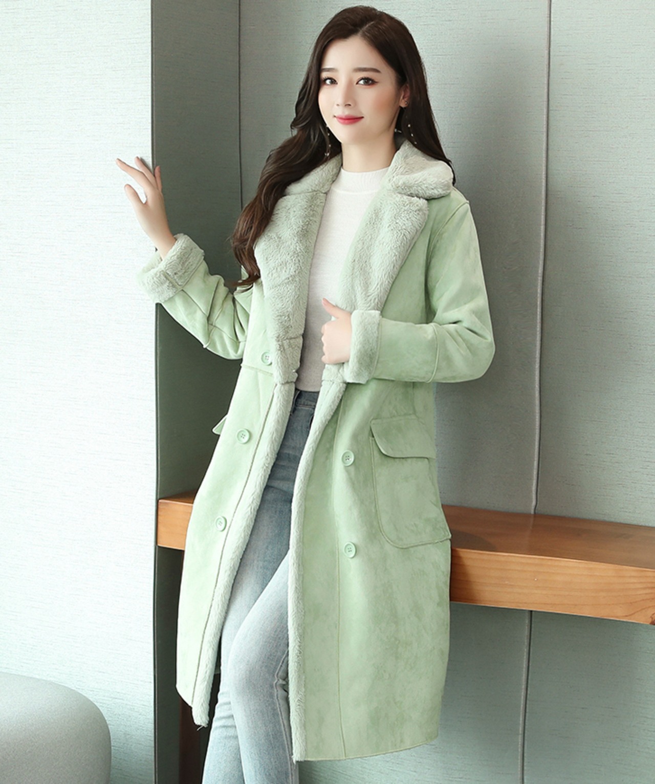 アウター コート ボアブルゾン 膝丈 ひざ丈 膝上 膝下 袖あり 長袖 襟付き 細身 ストレート もこもこ モコモコ ふわふわ ポケット ファー スウェード 大人可愛い カジュアル おしゃれ お洒落 ラブリー キュート ガーリー 存在感 秋 冬 2022 2023 10代 20代 レディース 女性用 学生 通学 デート お出かけ イベント スタイル 暖かい 防寒 モテ S M L XL 2XL 青 ブルー 緑 グリーン 灰色 グレー ピンク 水色 パステルカラー 春カラー