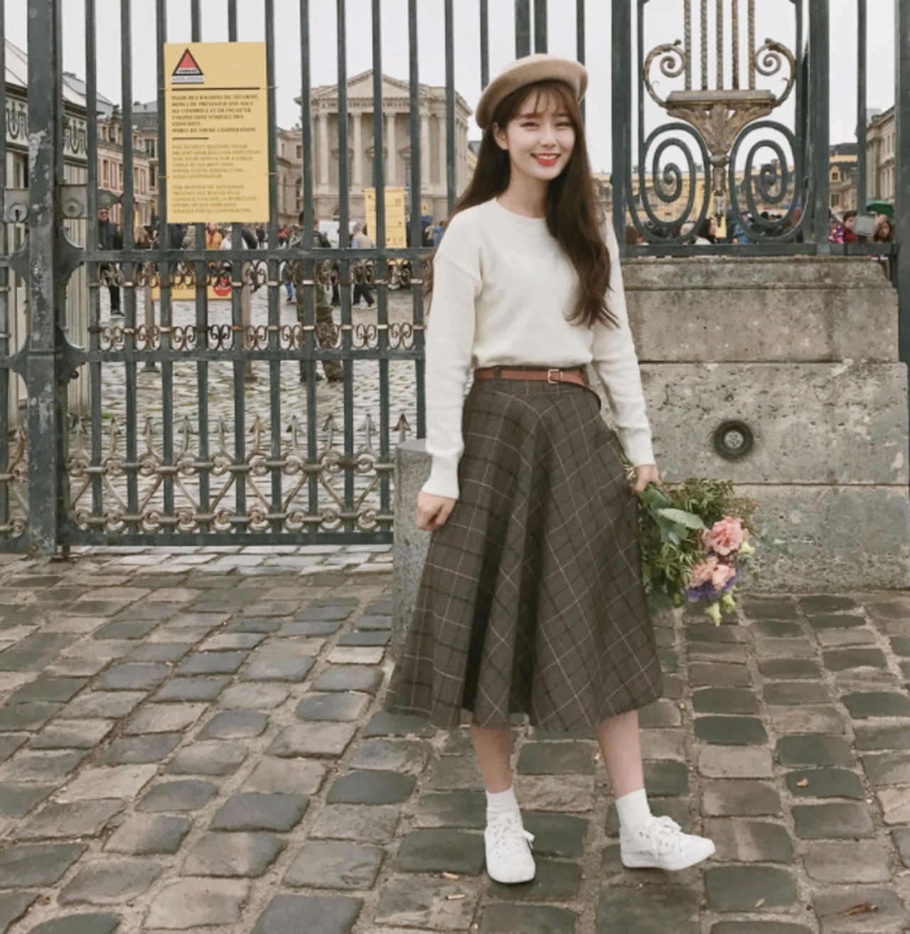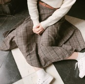 チェック柄がかわいいミモレ丈スカートです。