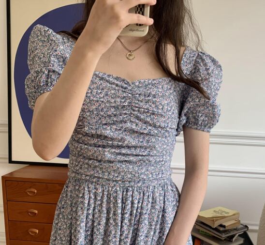 フレアワンピース トップス スイート ガーリー ミドル丈 袖あり 半袖 スクエアネック フレア Aライン シャーリング 大人女子 大人 上品 おしゃれ デイリーウェア レトロ レトロ風 こなれ感 キュート かわいい 女子 個性的 デザイン 主役級 存在感 柄 花柄 フラワー 夏 サマー 20代 10代 レディース 女性用 学生 学校 通学 デート お出かけ 女子会 食事会 着回し 普段使い モテ トレンド ファッション コーデ M S XS 小さいサイズ