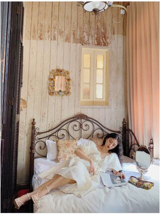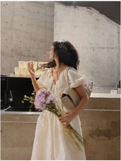 ふわりと広がるギャザー入りのスカートがガーリーな印象に。