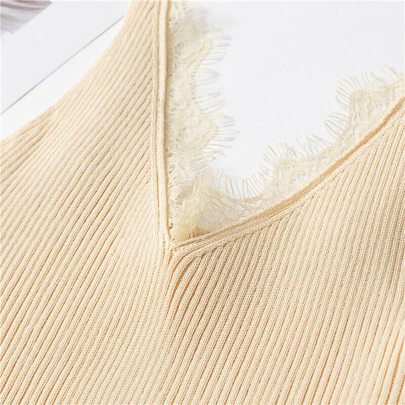 デコルテがきれいに見えるVネックのレースキャミソールです。
