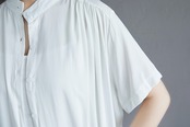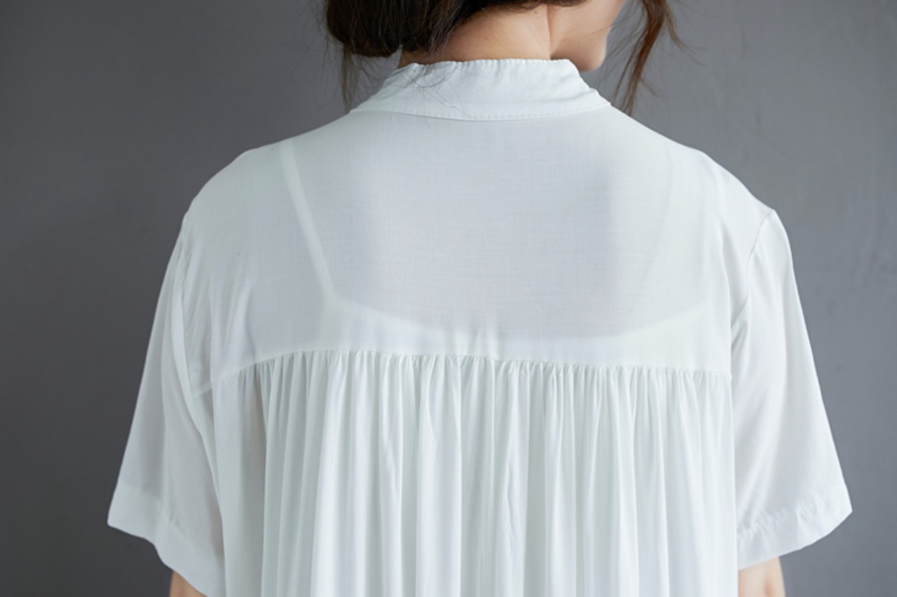 透け感が大人なロング丈のスタンドカラーシャツワンピースです。