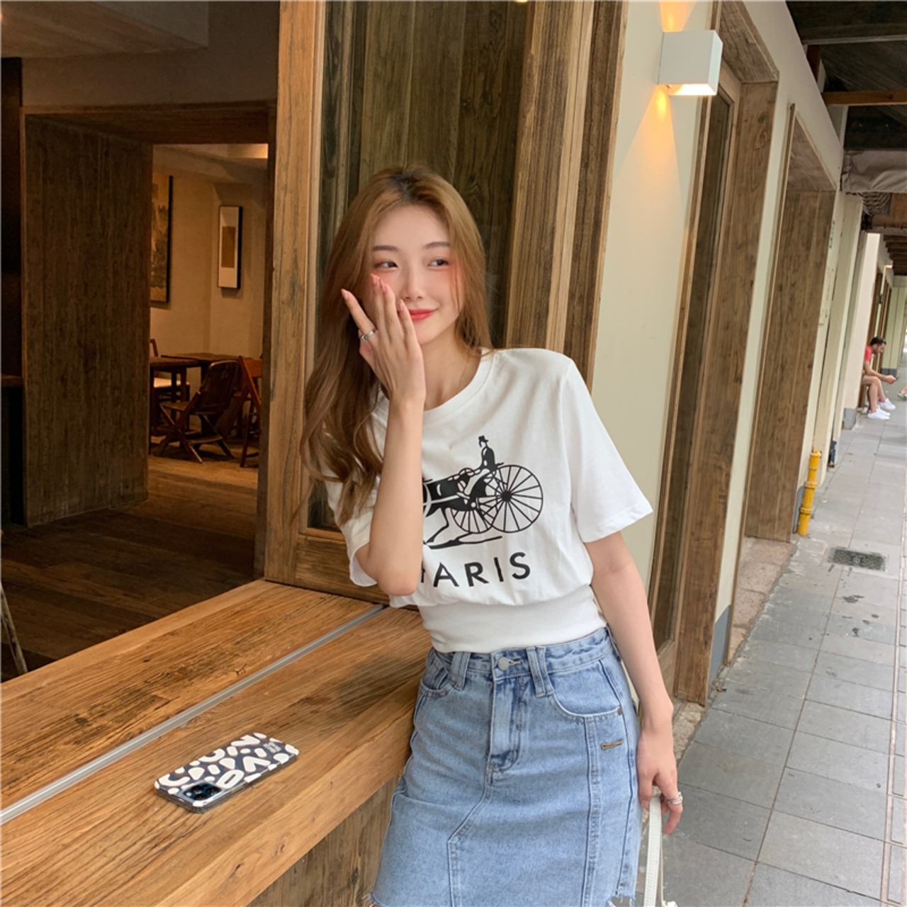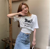 ウエストシェイプデザインの半袖Tシャツ