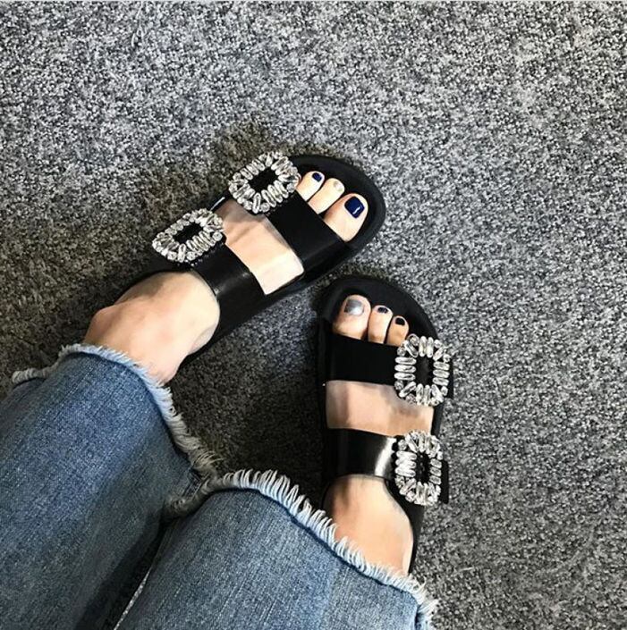 ラインストーンスクエアバックルサンダル