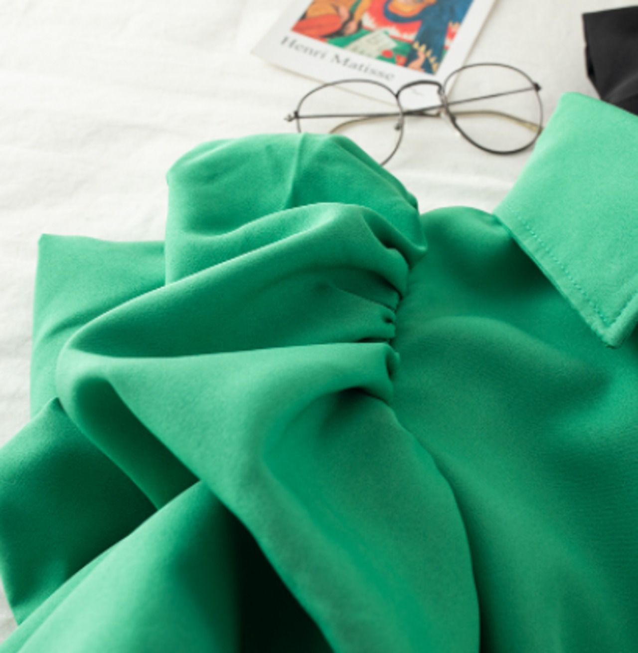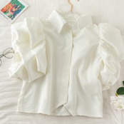 ボリューム袖が華やかなショート丈シャツ