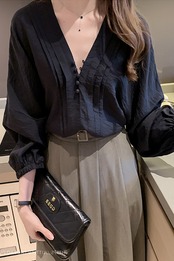 デコルテがきれいに見えるVネックが魅力のアイテムです!