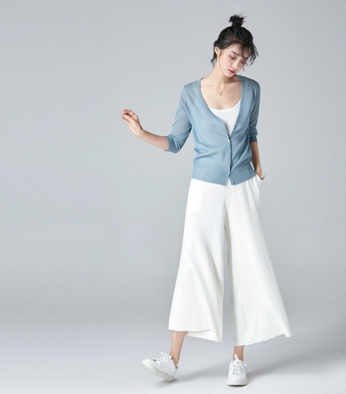 短めの袖が涼し気で爽やかな印象をつけてくれます。