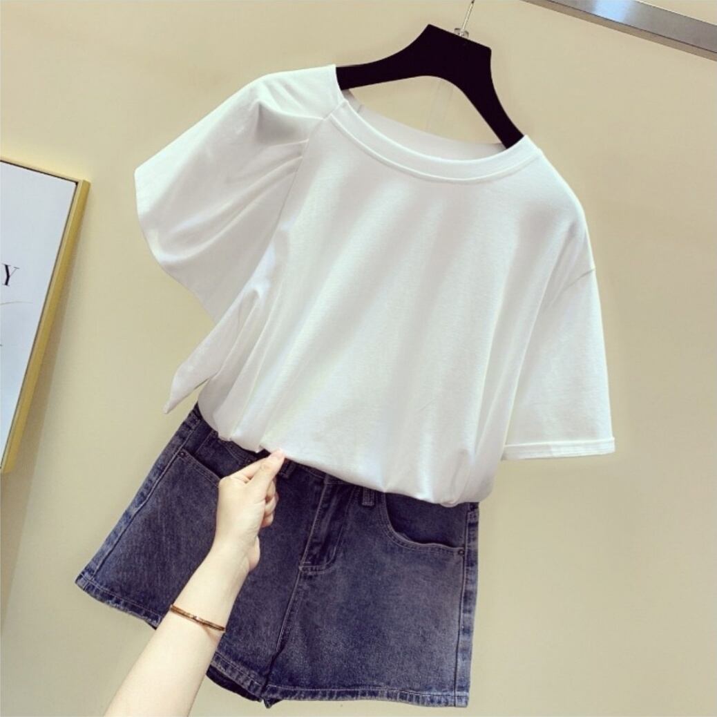 トップス Tシャツ カットソー プルオーバー 白トップス 袖あり 5分袖 五分袖 7分袖 七分袖 ドロップショルダー ラウンドネック アシンメトリー 綿 コットン かわいい 大人可愛い シンプル カジュアル 大人 おしゃれ お洒落 大人女子 ラフ メンズライク マニッシュ ボーイッシュ キュート ルーズ 個性的 モダン 無地 春 夏 10代 20代 30代 レディース 学生 通学 デート お出かけ 公園デビュー 休日 着回し 普段使い 体系カバー S M L XL 白 ホワイト