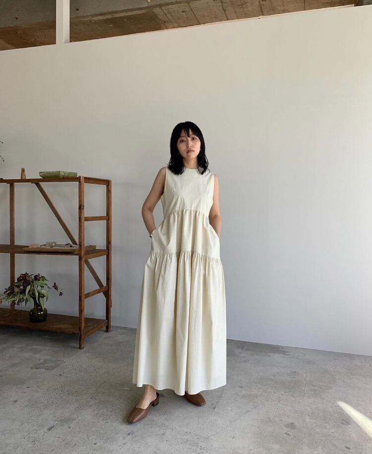 落ち着いた雰囲気がありつつ、ふんわりとしたスカートが可愛さも引き出す魅力的な一着です。