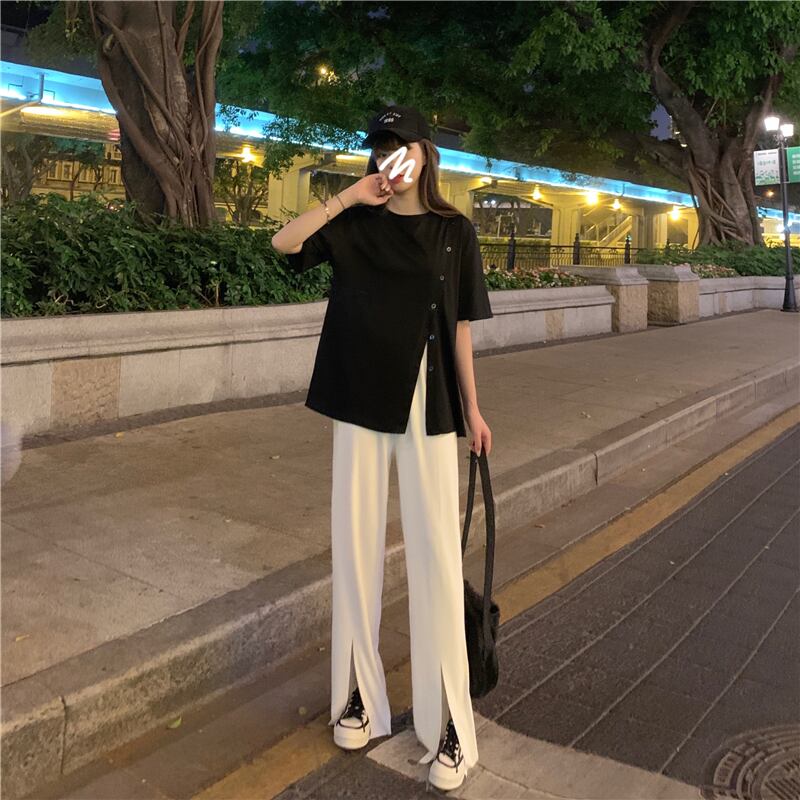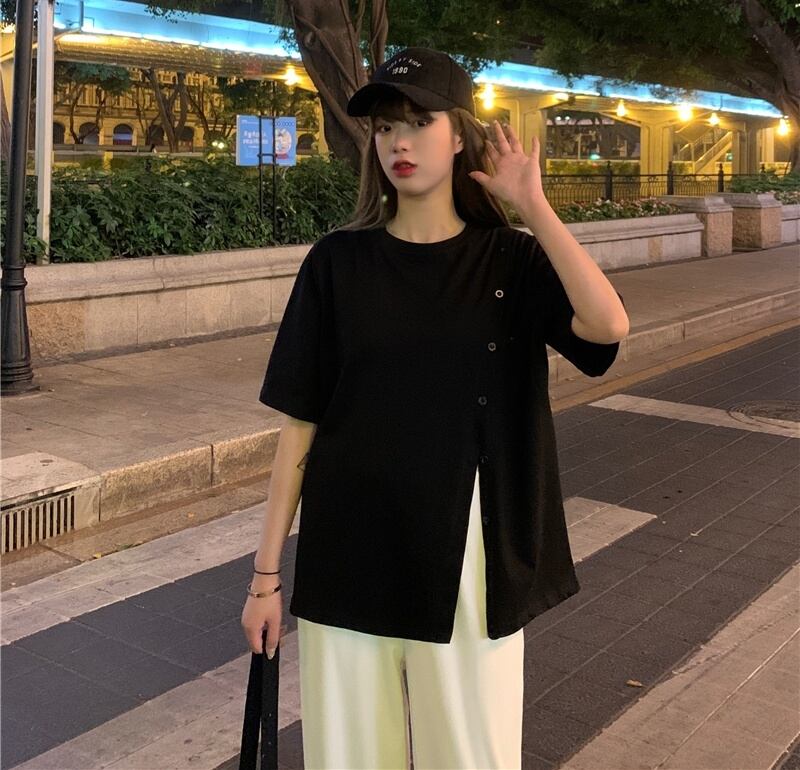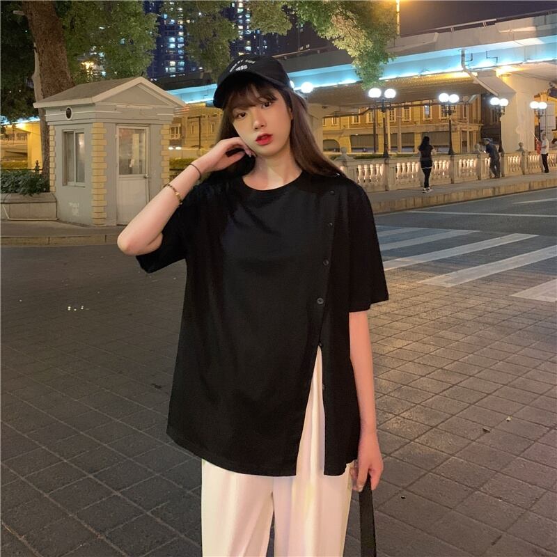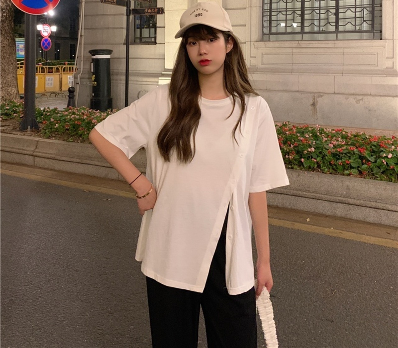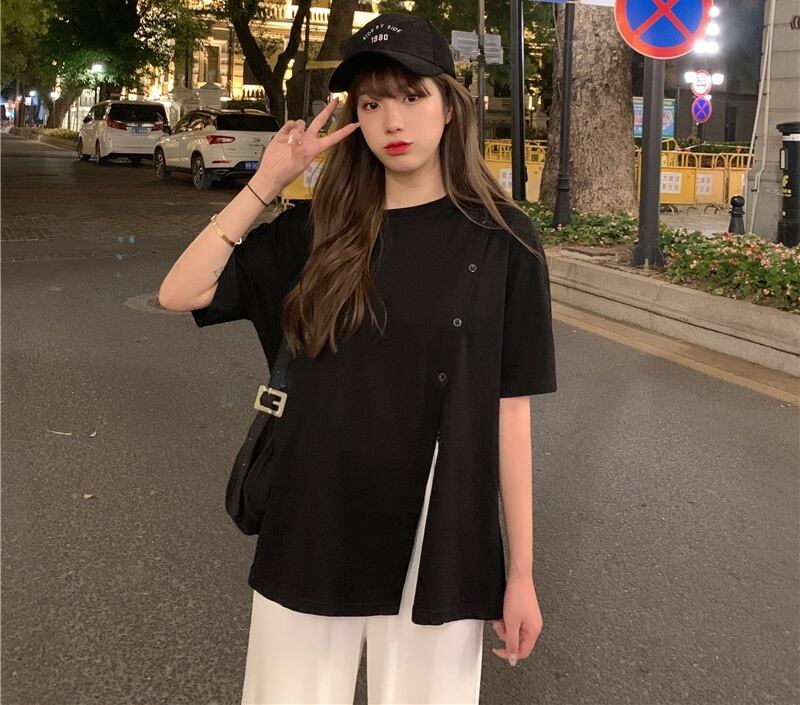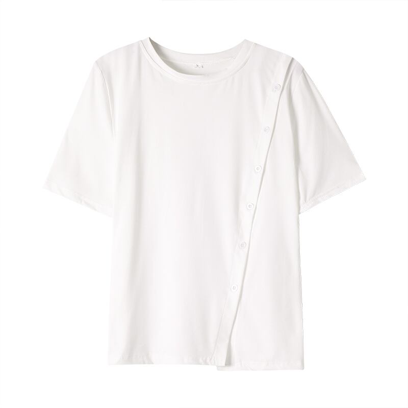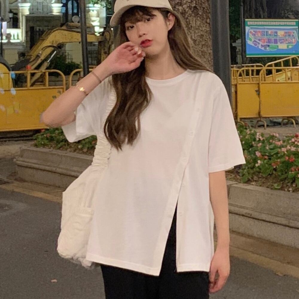 トップス Tシャツ 白シャツ 白トップス 袖あり 半袖 5分袖 五分袖 クルーネック アシンメトリー 綿 コットン かわいい シンプル カジュアル おしゃれ お洒落 かっこいい こなれ感 ラフ メンズライク マニッシュ ボーイッシュ ルーズ クール モード系 モダン 無地 春 夏 10代 20代 30代 40代 レディース 女性用 学生 通学 デート お出かけ 女子会 休日 着回し 普段使い 楽ちん モテ フリーサイズ ゆったり ゆる 白 ホワイト 黒 ブラック