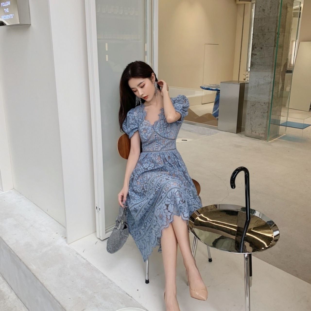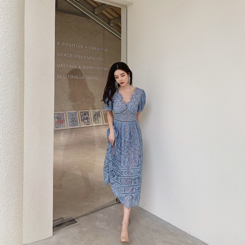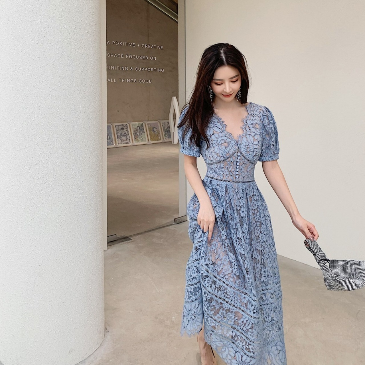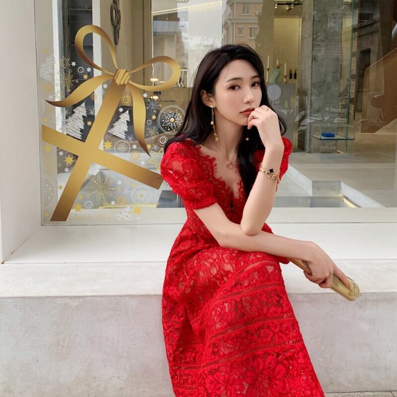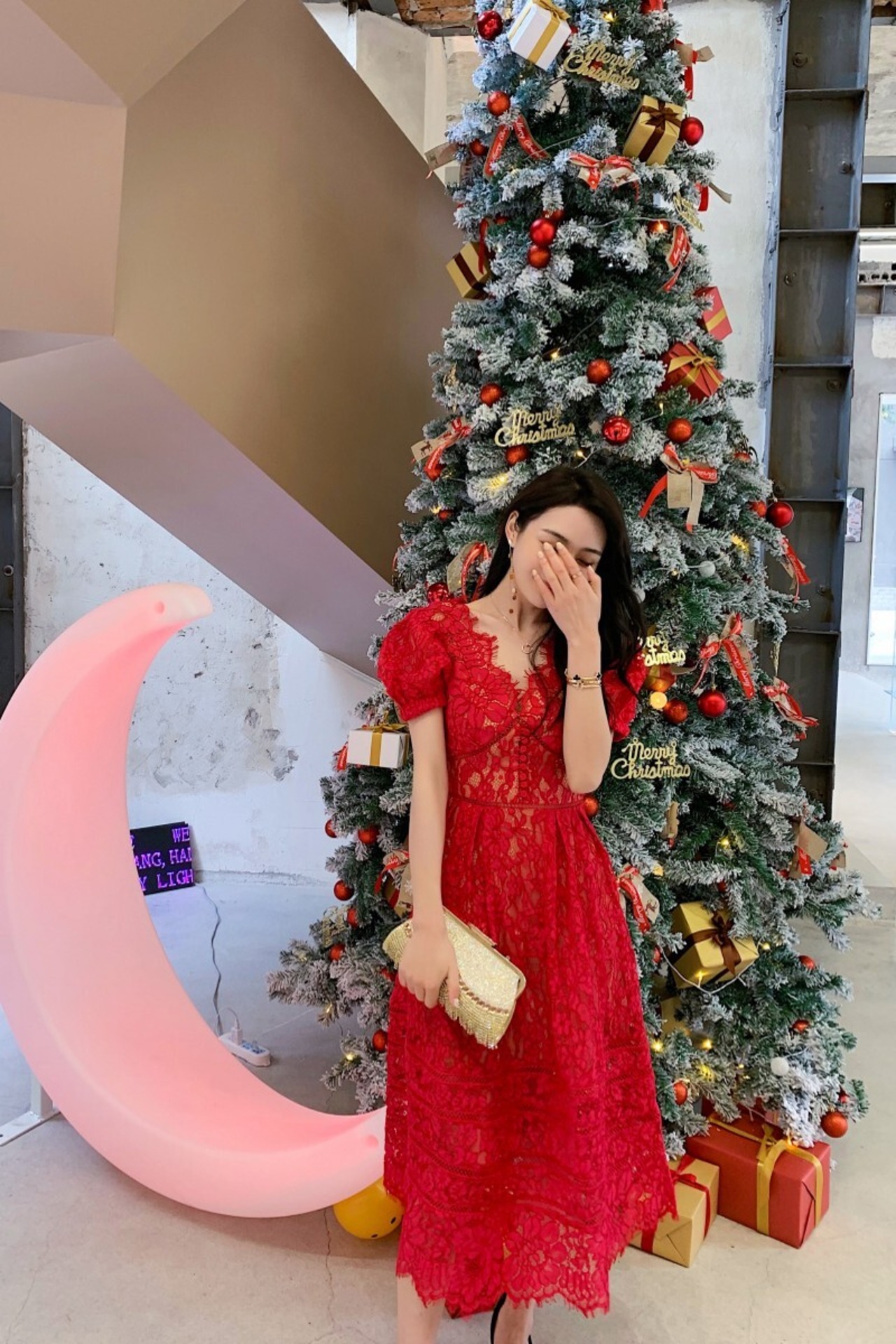 レースワンピース ワンピース スイート ガーリー ブルー 青 レッド 赤 ミドル丈 袖あり 半袖 Vネック フレア スリム 細身 タイト 透け感 シアー レース ポリエステル 大人女子 大人 上品 おしゃれ エレガント レトロ レトロ風 こなれ感 個性的 デザイン 主役級 存在感 無地 春 スプリング 夏 サマー 20代 10代 30代 レディース 女性用 学生 学校 通学 デート お出かけ 女子会 食事会 トレンド ファッション コーデ S M L XL XS 小さいサイズ