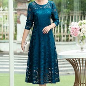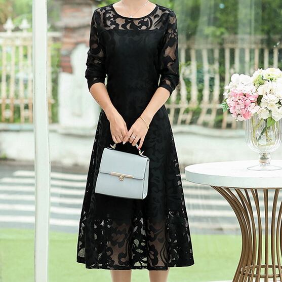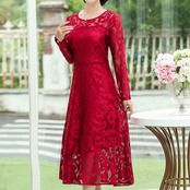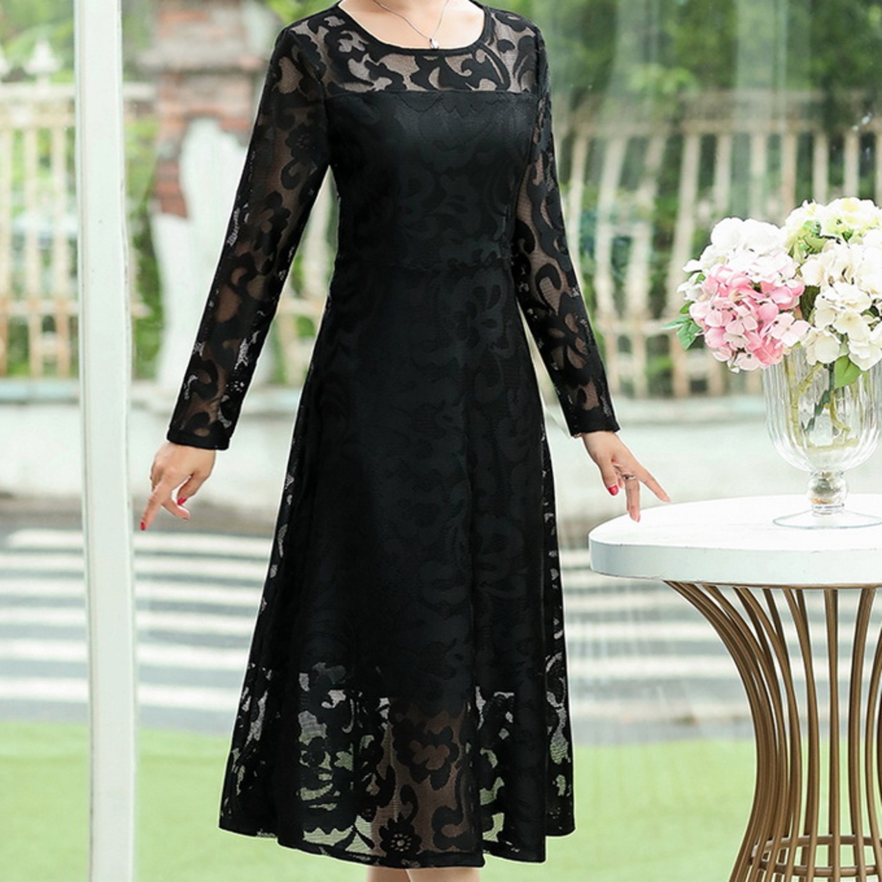 ドレス ワンピース パーティドレス 二次会ドレス ワンピドレス ミモレ丈 長袖 ラウンドネック Aライン レース ハイウエスト 透け感 大人女子 エレガント フォーマル きれいめ シンプル 華やか 大人 上品 20代 30代 40代 50代 60代 レディース ホテル レストラン 体系カバー 夏 結婚式 二次会 2次会 1.5次会 披露宴 お呼ばれ イベント パーティ 入学式 入園式 卒業式 卒園式 謝恩会 演奏会 発表会 ブラック レッド ブルー 大人カラー