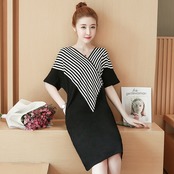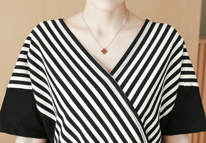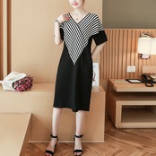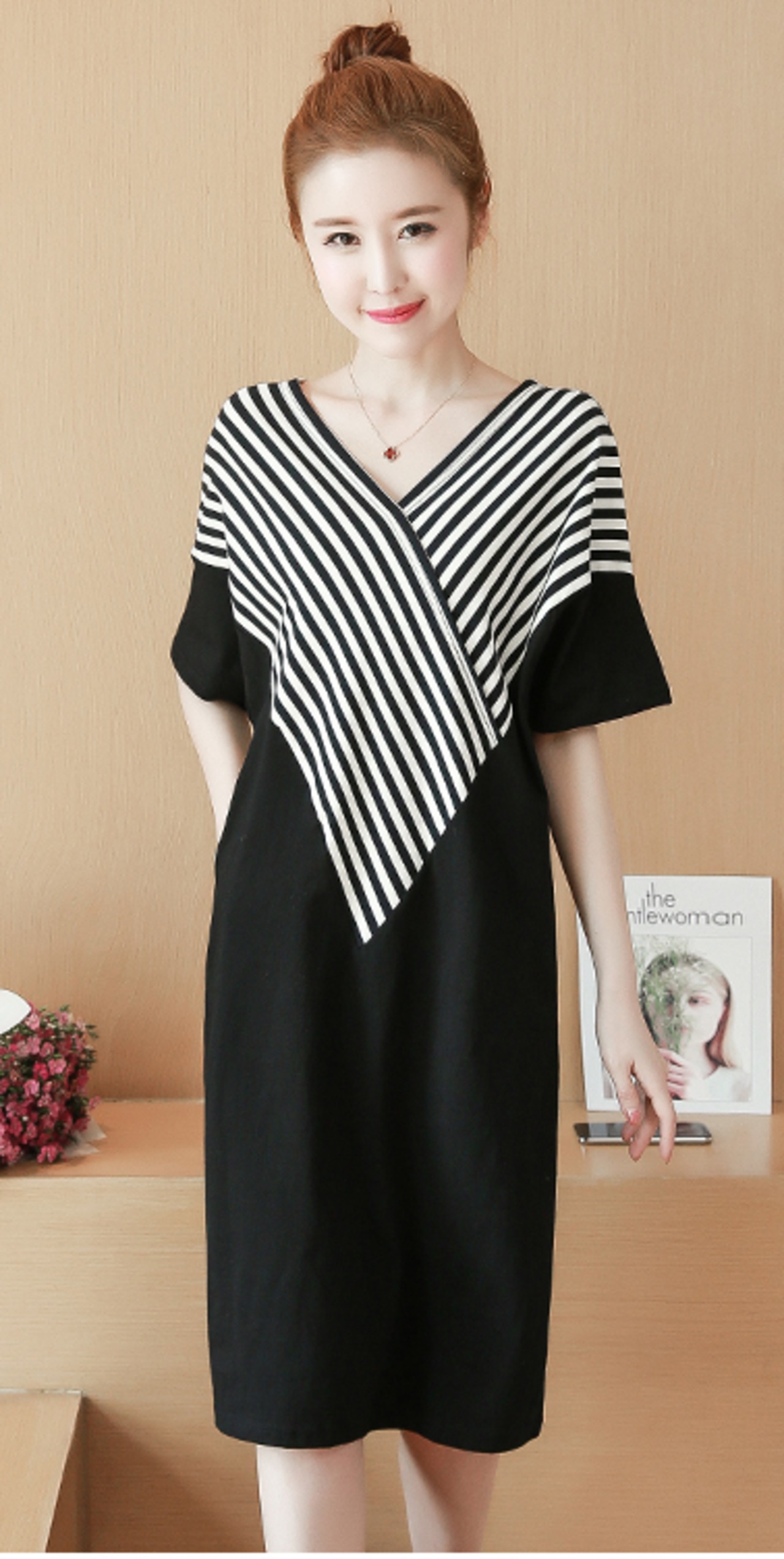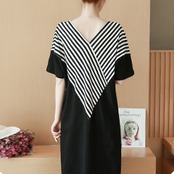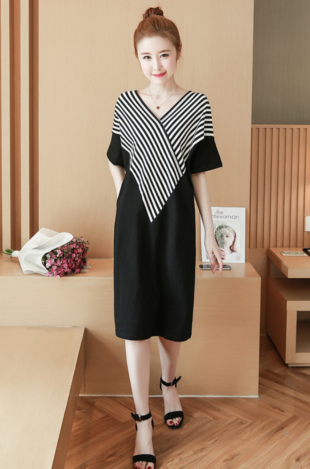 ワンピース フレアワンピース カシュクール ひざ丈 五分袖 Vネック カシュクール ストライプ きれいめ ポケット 大人 大人女子 こなれ感 存在感 シック 春 夏 秋 20代 30代 40代 レディース オフィス ビジネス OL 通勤 学生 デート お出かけ 女子会 イベント 華奢見え コーデ モテ 美脚 ブラック 大人カラー モノトーン