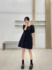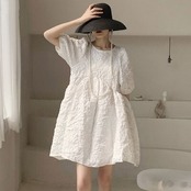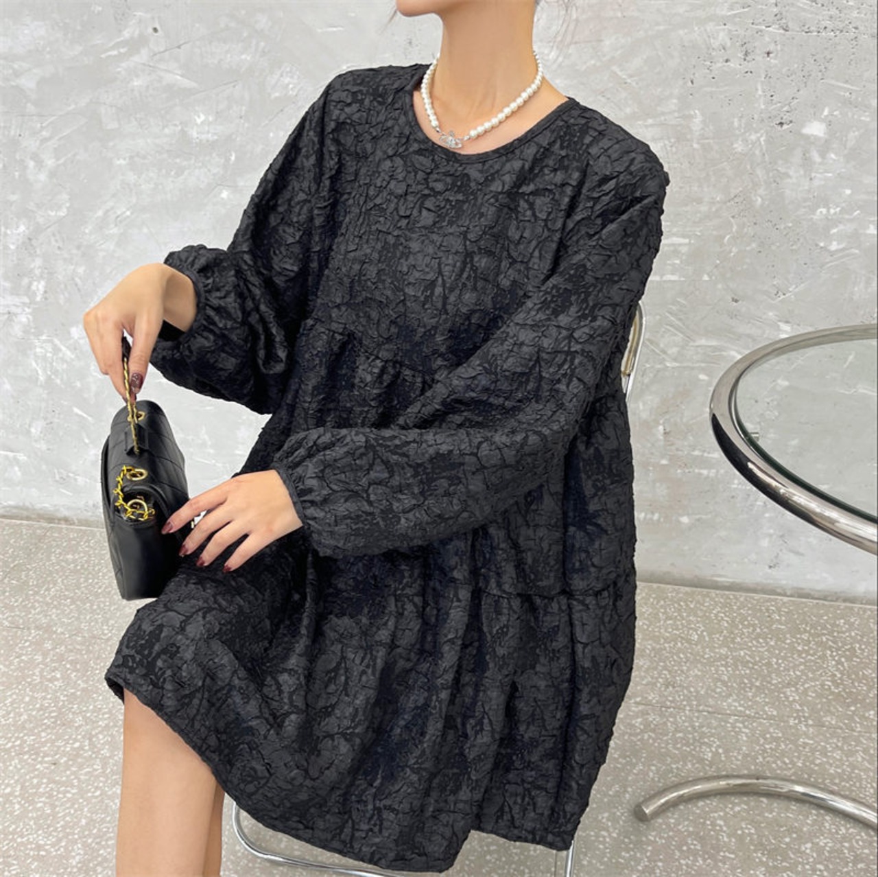 ティアードワンピース トップス スイート ガーリー ブラック 黒 ホワイト 白 ミニ丈 ショート丈 袖あり 長袖 半袖 ラウンドネック フレア Aライン シャーリング 大人女子 大人 上品 おしゃれ デイリーウェア レトロ レトロ風 こなれ感 ルーズ シルエット ラフ キュート かわいい 女子 個性的 デザイン 主役級 存在感 柄 春 スプリング 夏 サマー 20代 10代 レディース 女性用 学生 学校 通学 デート お出かけ 女子会 食事会 L XL 2XL