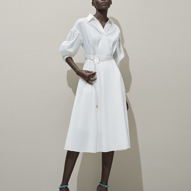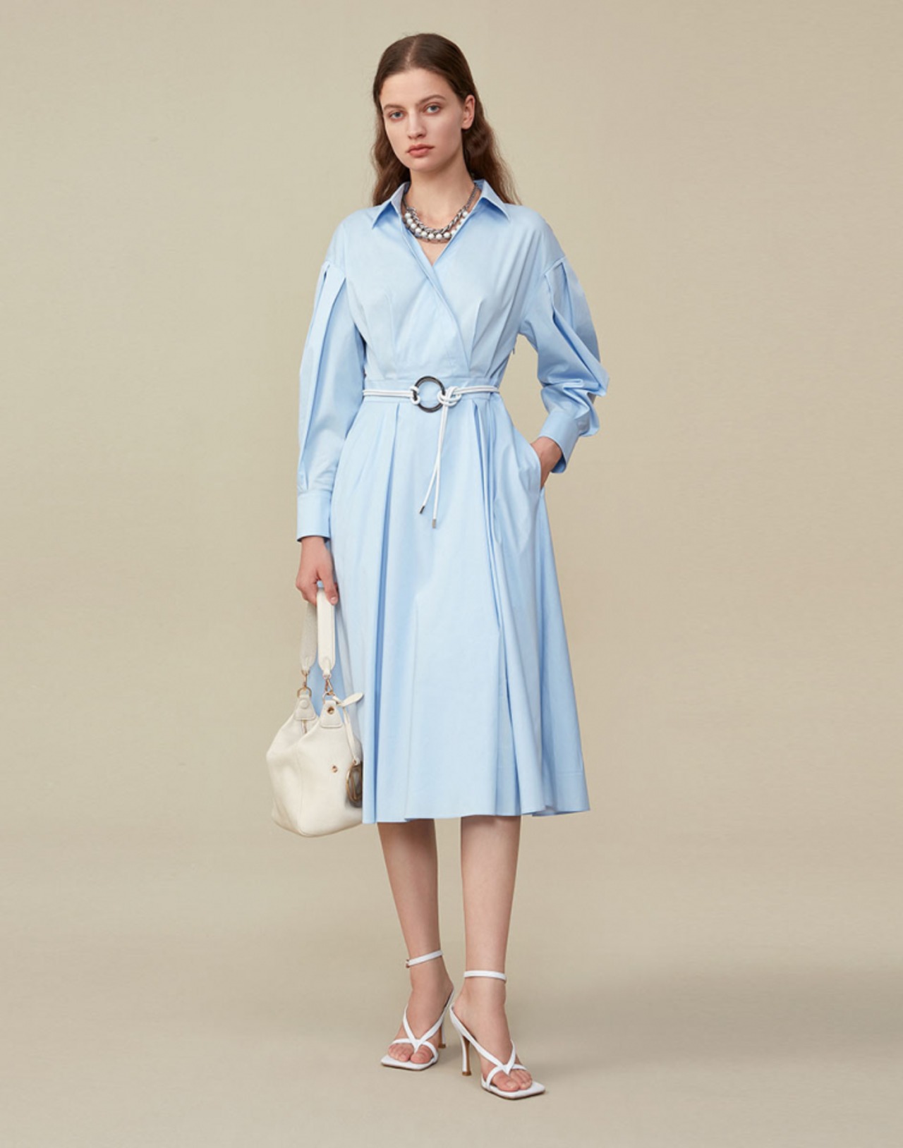 ワンピース シャツワンピース フレアワンピース 膝丈 ひざ丈 膝下 袖あり 長袖 ドロップショルダー Vネック カシュクール 襟付き スタンダードカラー フレア Aライン ウエストマーク ハイウエスト 綿 コットン かわいい 大人可愛い きれいめ シンプル 大人 上品 おしゃれ お洒落 大人女子 こなれ感 クール エレガント モダン フォーマル 抜け感 フェミニン 無地 春 夏 秋 20代 30代 40代 レディース 女性用 オフィス OL 通勤 デート 普段使い スタイル モテ 体系カバー 美脚 脚長
