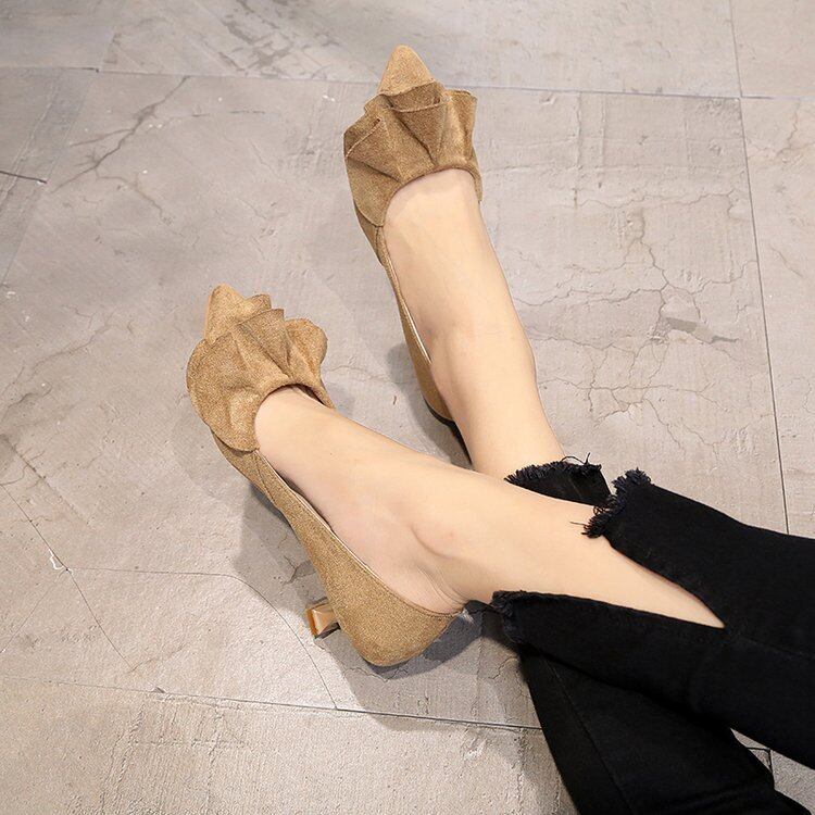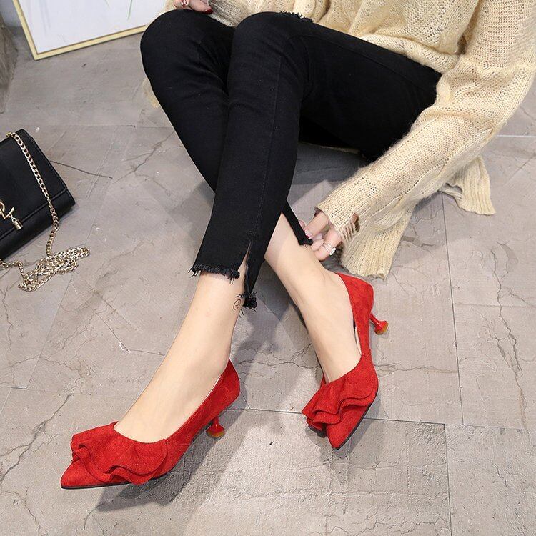 シューズ 靴 くつ クツ パンプス レディースシューズ ヒールパンプス ヒール ミドルヒール 4cmヒール ラウンドトゥ フリル PU スウェード かわいい 大人可愛い きれいめ シンプル 大人 上品 おしゃれ お洒落 エレガント キュート ガーリー 女っぽ 無地 春 夏 20代 30代 レディース 女性用 デート お出かけ パーティー 普段使い コーデ モテ 定番 22.5-23.0cm 23.0-23.5cm 23.5-24.0cm 24.0-24.5cm 黒 ブラック 赤 レッド カーキ ピンク
