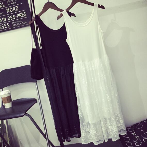 ワンピース ノースリーブワンピ Aライン ミモレ丈 ノースリーブ ラウンドネック フレア 切り替えデザイン レース 伸縮性 無地 かわいい 大人可愛い シンプル カジュアル 大人 上品 フェミニン 大人女子 キュート ガーリー ナチュラル 春 夏 秋 10代 20代 30代 40代 レディース OL 学生 デート お出かけ 公園デビュー 女子会 旅行 着回し 普段使い 重ね着 コーデ モテ 美脚 ホワイト ブラック