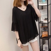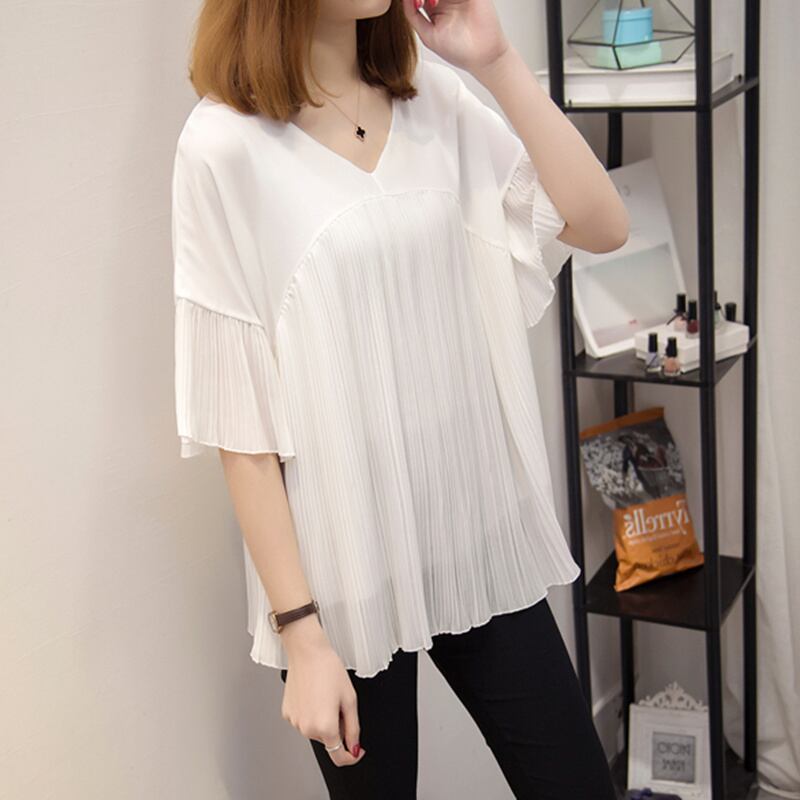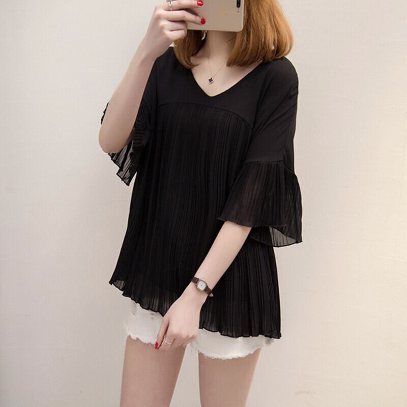 トップス カットソー 大きいサイズ 五分袖 フレアスリーブ Vネック ワイド プリーツ シフォン フリル 透け感 無地 大人可愛い きれいめ シンプル カジュアル 大人 上品 おしゃれ 大人女子 抜け感 シック ナチュラル 春 夏 10代 20代 30代 40代 50代 レディース オフィス ビジネス OL 通勤 学生 通学 デート お出かけ 公園デビュー 女子会 イベント レストラン 着回し 普段使い 華奢見え コーデ モテ 体系カバー 定番 ホワイト ブラック