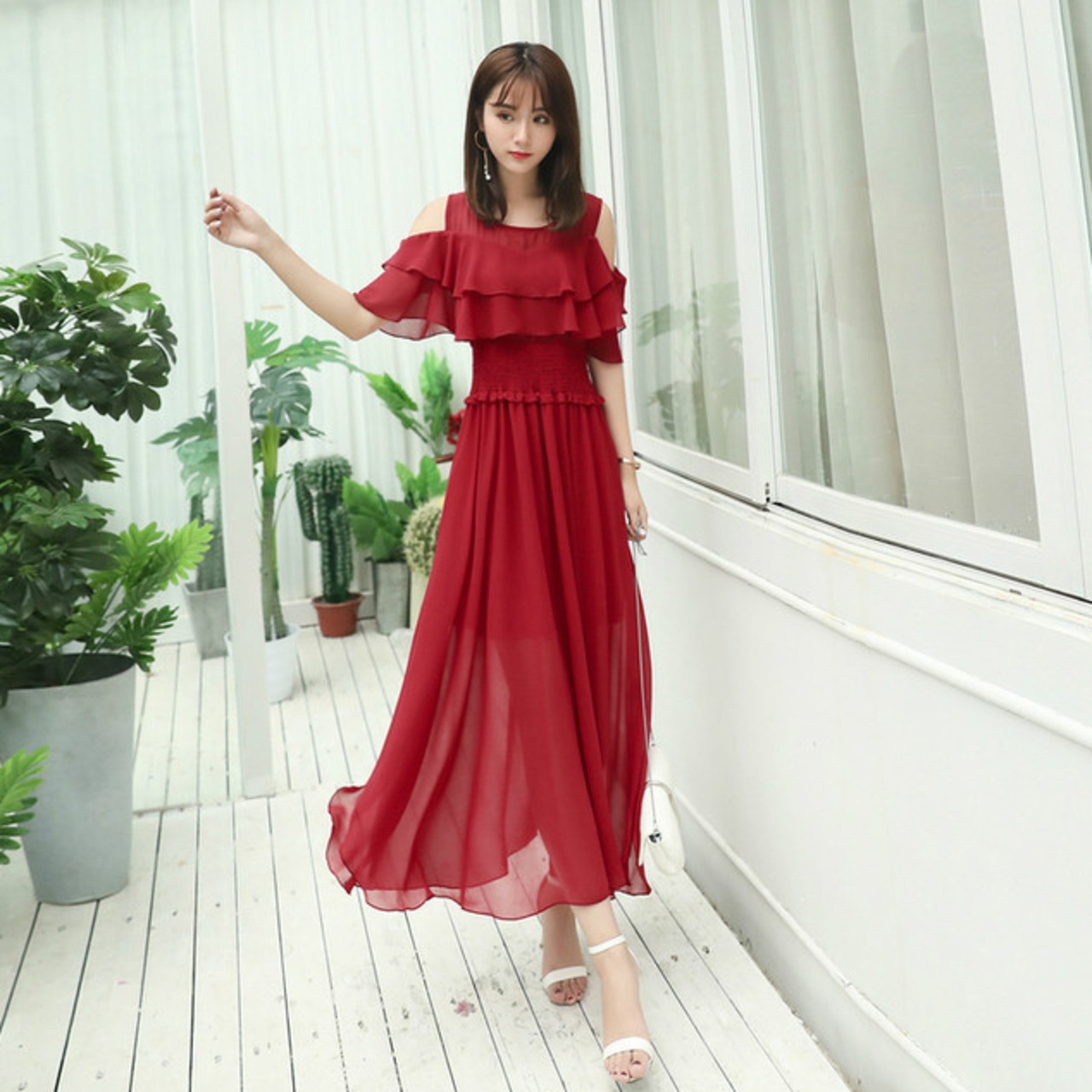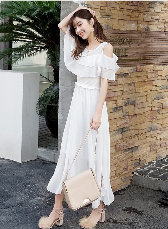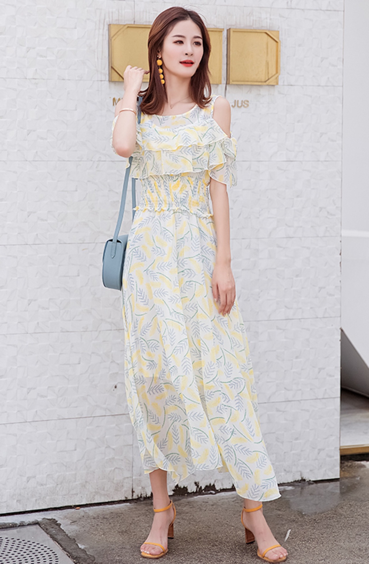 ワンピース オフショルダー ロング丈 フレアスリーブ 肩出し フレア シフォン ハイウエスト 透け感 伸縮性 無地 リーフ柄 かわいい 大人可愛い シンプル カジュアル 大人 上品 フェミニン 大人女子 キュート ガーリー ナチュラル 夏 10代 20代 30代 40代 レディース OL 学生 デート お出かけ 女子会 リゾート 旅行 海 プール 高原 ホテル ガーデン レストラン 華奢見え コーデ モテ 体系カバー ホワイト ブラック レッド ブルー イエロー