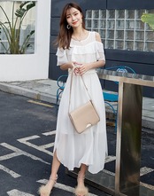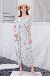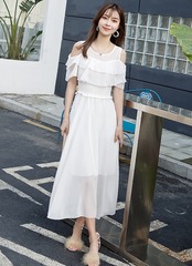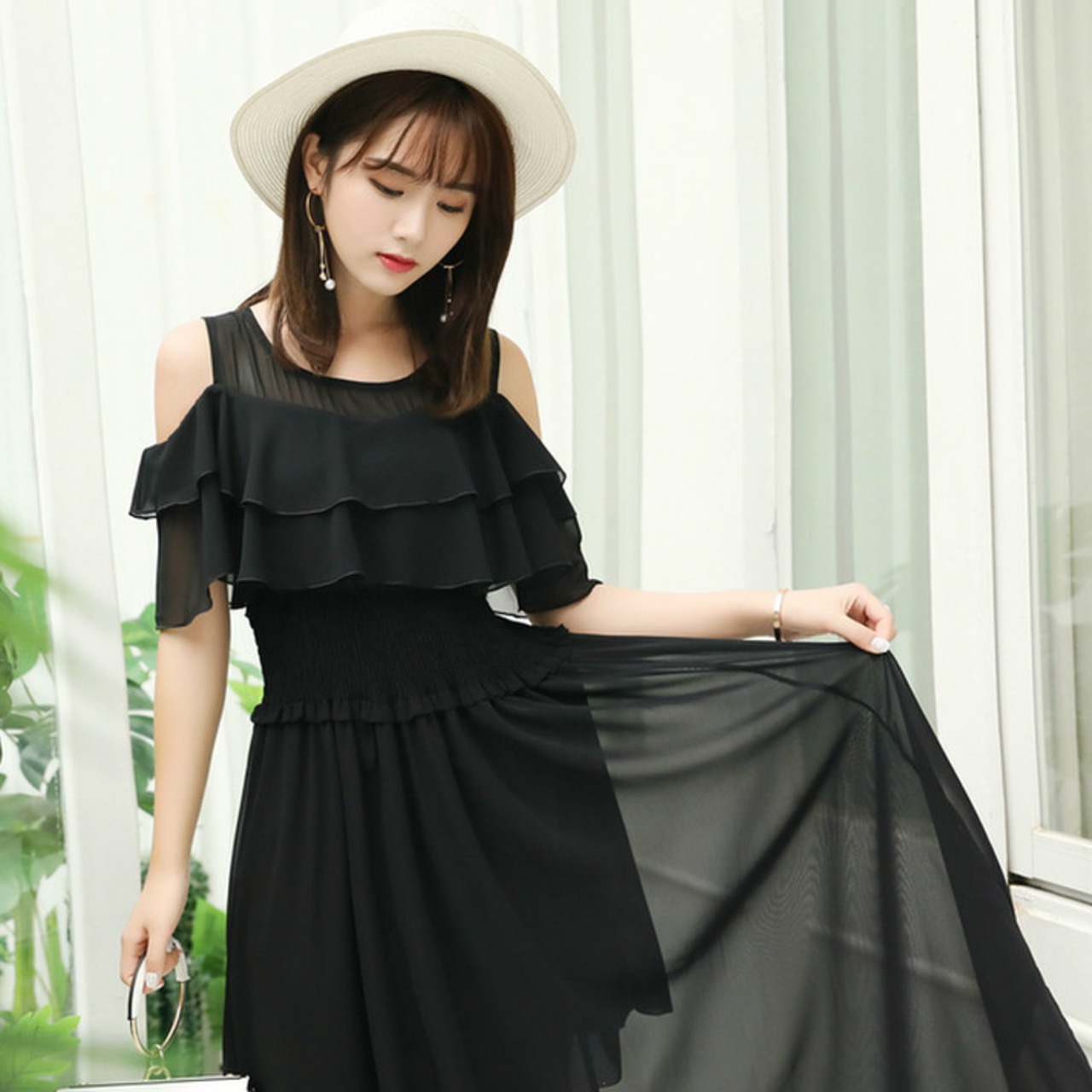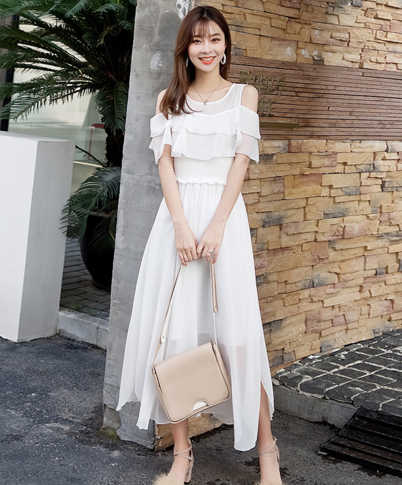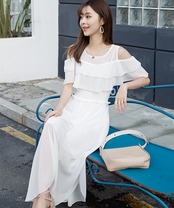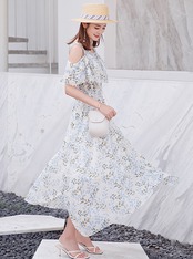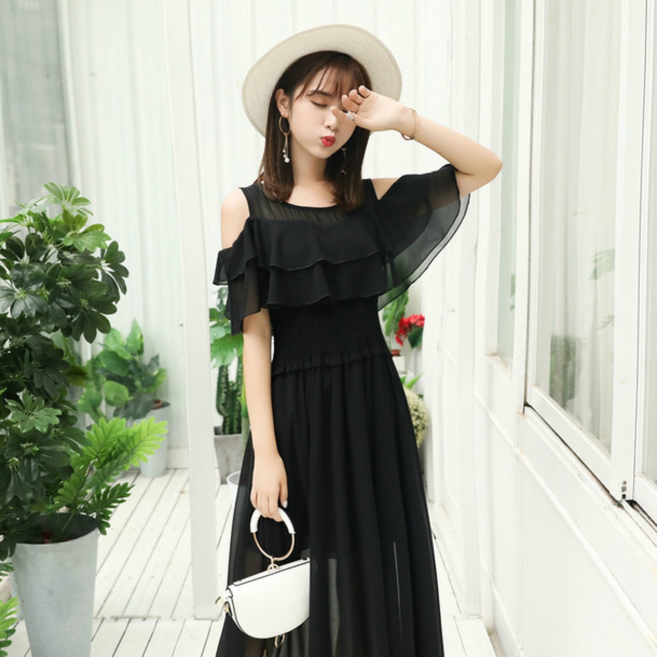 ワンピース オフショルダー ロング丈 フレアスリーブ 肩出し フレア シフォン ハイウエスト 透け感 伸縮性 無地 リーフ柄 かわいい 大人可愛い シンプル カジュアル 大人 上品 フェミニン 大人女子 キュート ガーリー ナチュラル 夏 10代 20代 30代 40代 レディース OL 学生 デート お出かけ 女子会 リゾート 旅行 海 プール 高原 ホテル ガーデン レストラン 華奢見え コーデ モテ 体系カバー ホワイト ブラック レッド ブルー イエロー