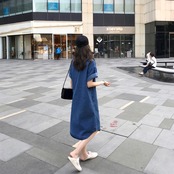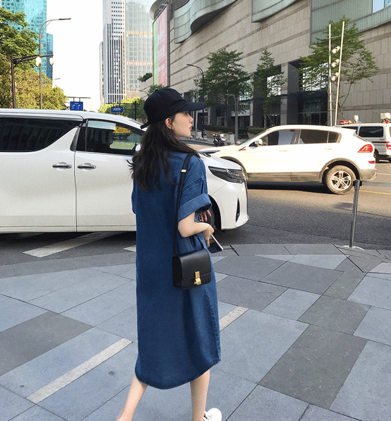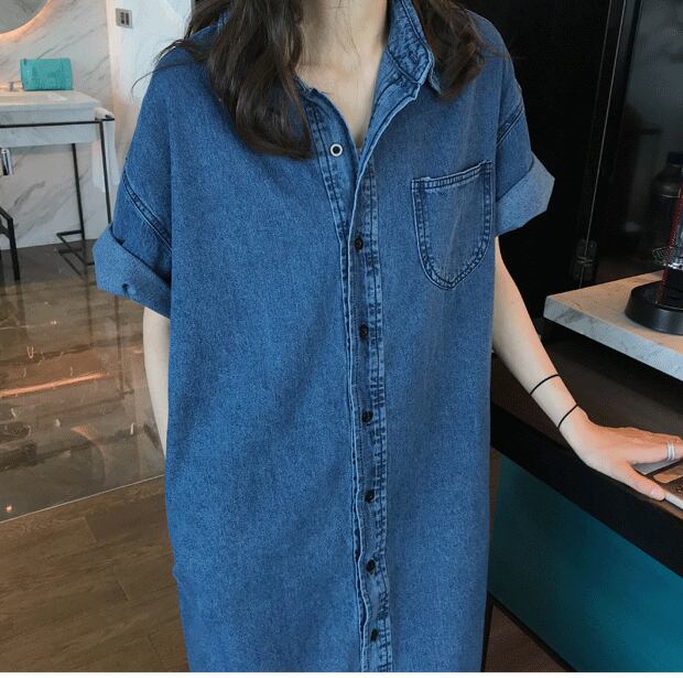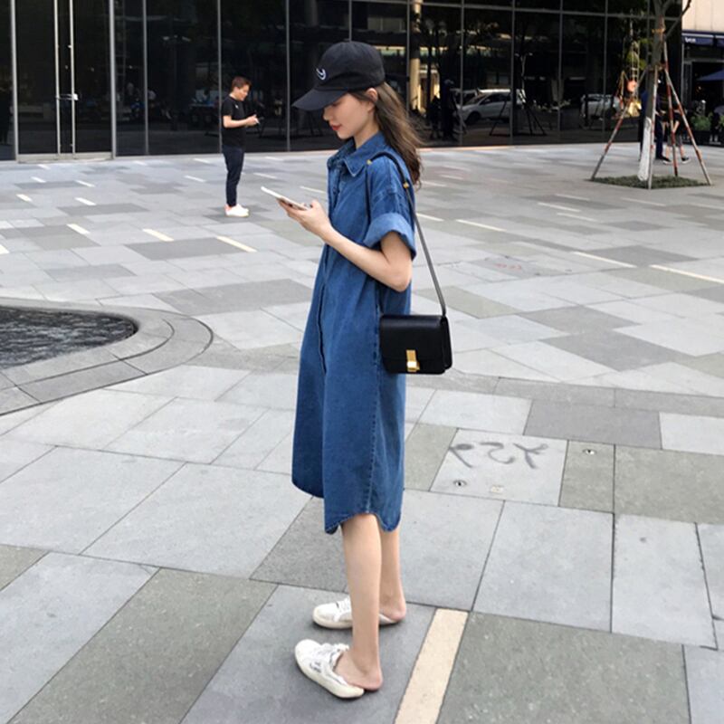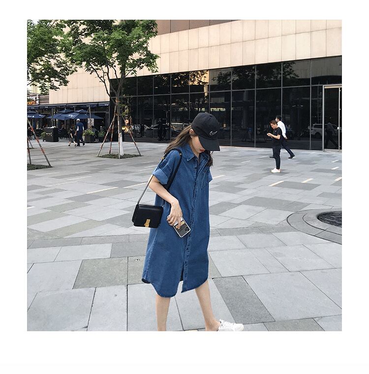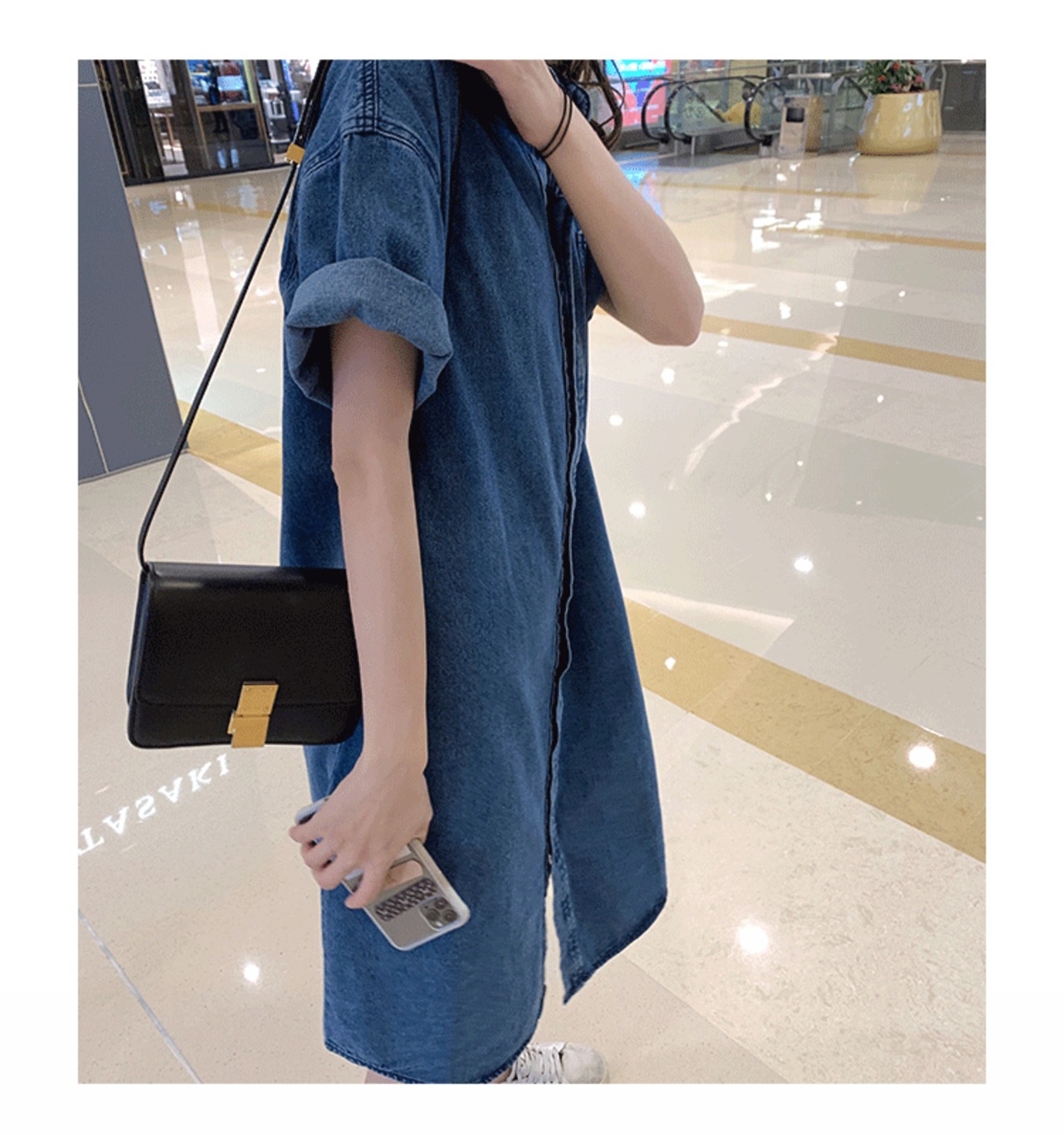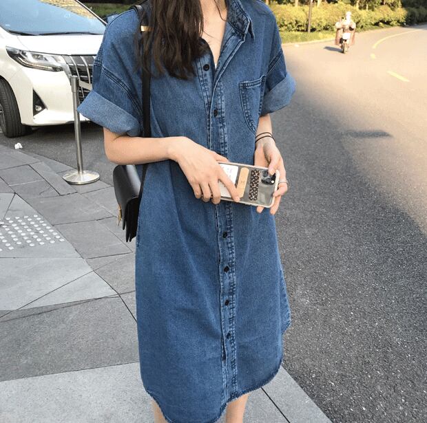 ワンピース シャツワンピース デニムワンピース 膝丈 ひざ丈 膝下 袖あり 半袖 ドロップショルダー Vネック 襟付き セミフレア ストレート ワイド Iライン 前開き 2way デニム ブルーデニム シンプル カジュアル 大人 おしゃれ お洒落 かっこいい 大人女子 こなれ感 ラフ ボーイッシュ スポーティー 抜け感 春 夏 秋 10代 20代 30代 40代 50代 60代 レディース 女性用 OL 学生 通学 デート お出かけ 女子会 休日 アウトドア 旅行 高原 安い S M L XL 青 ブルー
