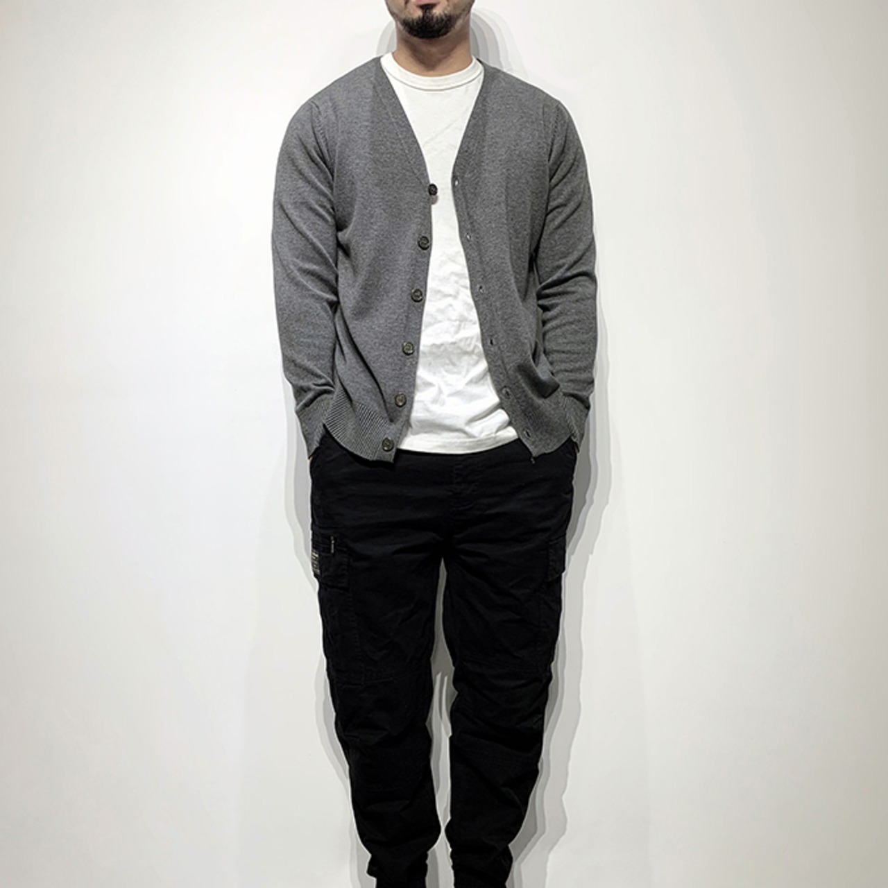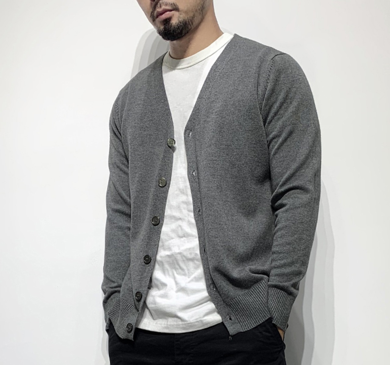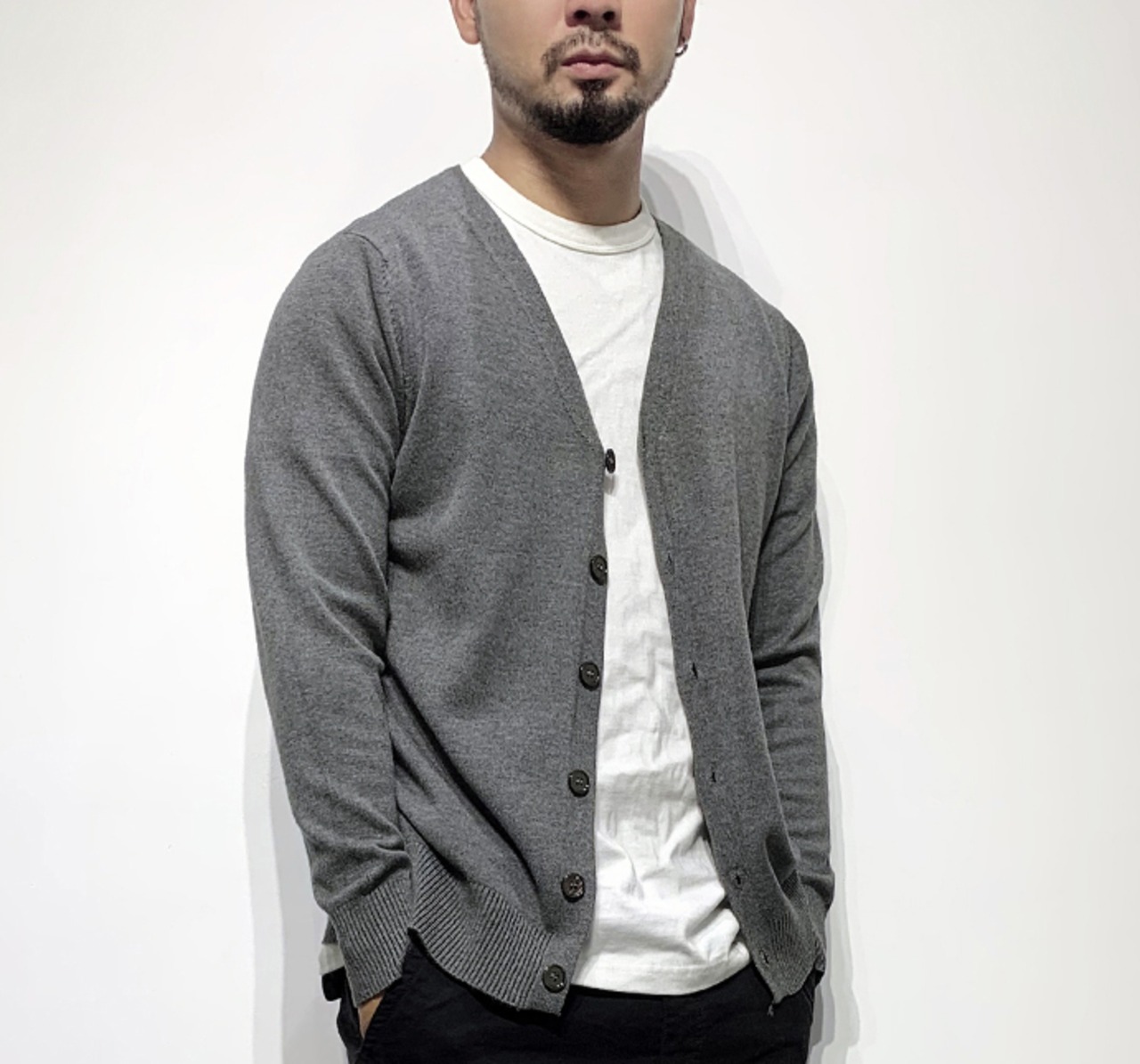定番カラーのニットカーディガンは色違いで持っていたいもの。