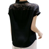 ブラウス フレンチスリーブ スタンドカラー 切り替えデザイン シフォン 透け感 薄手 きれいめ シンプル 大人 上品 おしゃれ かっこいい 大人女子 こなれ感 エレガント とろみ感 シック 夏 20代 30代 40代 50代 レディース オフィス ビジネス OL 通勤 デート お出かけ 女子会 リモート会議 ホテル レストラン 普段使い 美デコルテ コーデ ホワイト ブラック