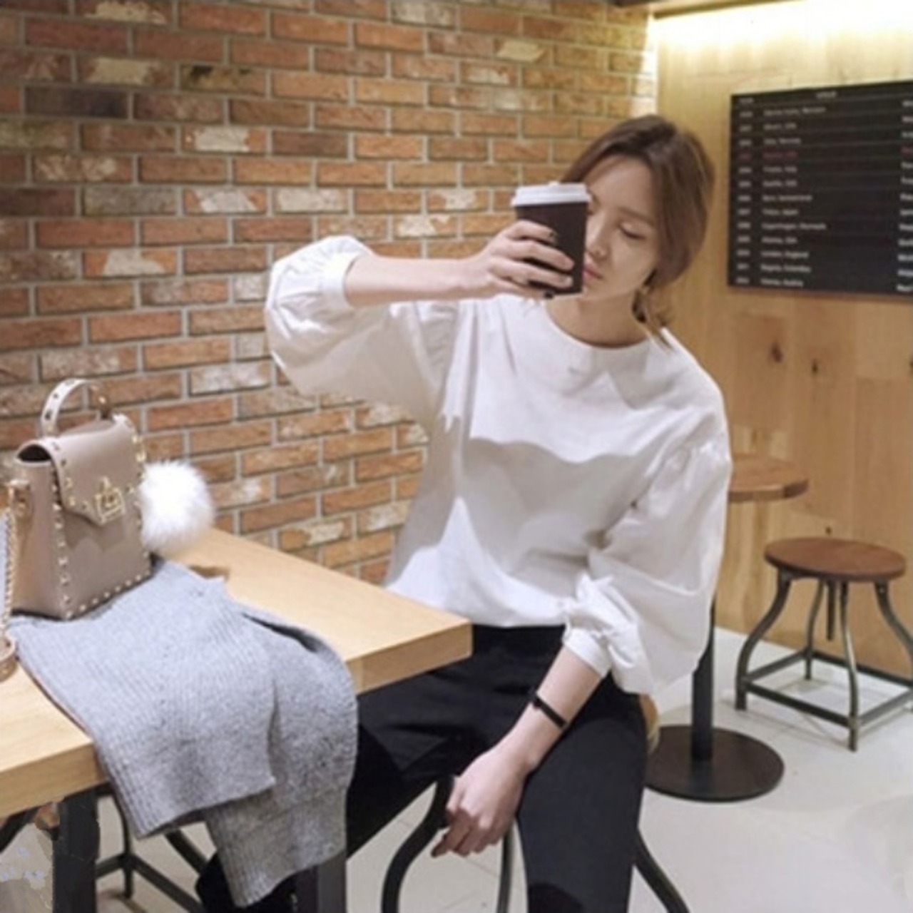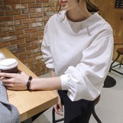トップス Tシャツ カットソー プルオーバー 白シャツ 白トップス 袖あり 長袖 ボリューム袖 パフスリーブ ラウンドネック ストレート ワイド Iライン かわいい 大人可愛い きれいめ シンプル カジュアル 大人 おしゃれ お洒落 大人女子 ラフ キュート ガーリー ルーズ 無地 春 夏 秋 冬 オールシーズン シーズンレス 10代 20代 30代 レディース 学生 通学 デート お出かけ 公園デビュー 女子会 休日 着回し 普段使い 楽ちん モテ S M L XL 白 ホワイト