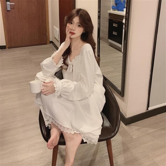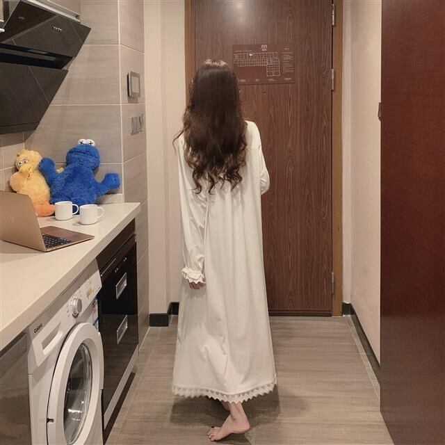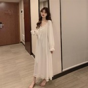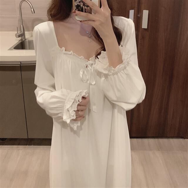 ルームウェア パジャマ ネグリジェ ミモレ ミモレ丈 袖あり 長袖 スクエアネック セミフレア Aライン レース 刺繍 チュール シフォン フリル リボン 透け感 シースルー おしゃれ お洒落 ラブリー キュート ガーリー セクシー エレガント とろみ感 抜け感 春 夏 秋 冬 オールシーズン シーズンレス 10代 20代 30代 40代 60代 レディース 女性用 ママ マタニティ モテ 体系カバー プレゼント ギフト インスタ映え M L XL XXL 白 ホワイト