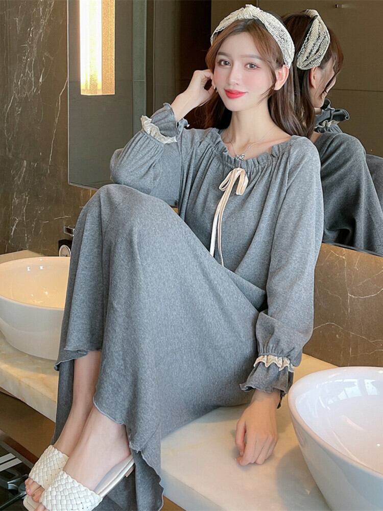 ルームウェア パジャマ ネグリジェ ミモレ ミモレ丈 袖あり 長袖 スクエアネック セミフレア Aライン レース 刺繍 チュール シフォン フリル リボン 透け感 シースルー おしゃれ お洒落 ラブリー キュート ガーリー セクシー エレガント とろみ感 抜け感 春 夏 秋 冬 オールシーズン シーズンレス 10代 20代 30代 40代 60代 レディース 女性用 ママ マタニティ モテ 体系カバー プレゼント ギフト インスタ映え M L XL XXL ホワイト ブラック グリーン ピンク グレー