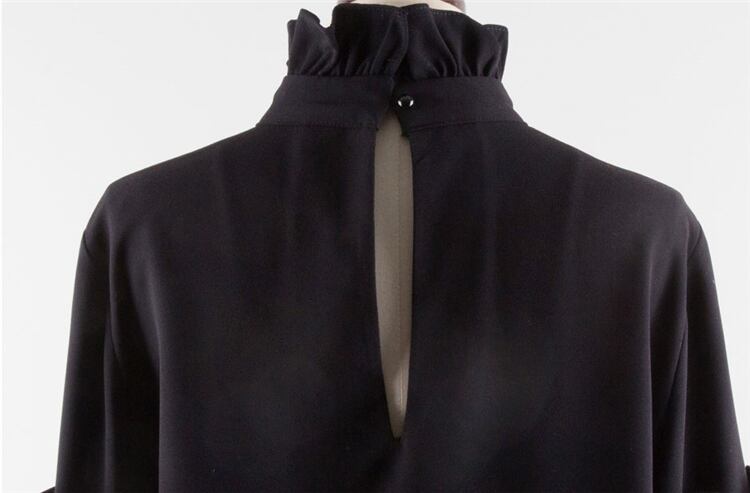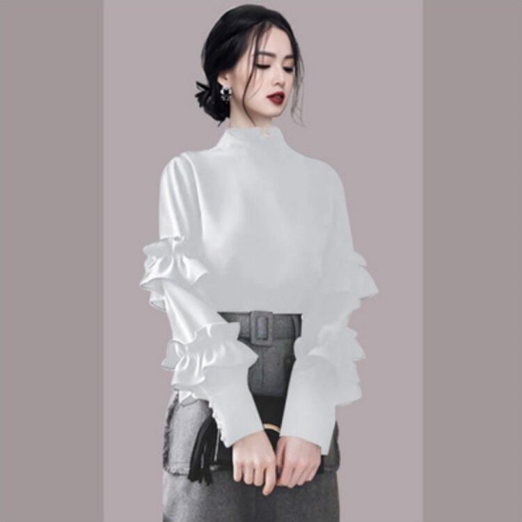 トップス ブラウス 白シャツ 白トップス 袖あり 長袖 ハイネック タートルネック スリム Iライン フリル バックシャン バックコンシャス かわいい 大人可愛い きれいめ シンプル カジュアル 大人 上品 おしゃれ お洒落 レトロ 大人女子 キュート ガーリー モード系 エレガント モダン 抜け感 フェミニン 無地 春 秋 冬 10代 20代 30代 レディース 女性用 オフィス OL 学生 通学 デート お出かけ 女子会 パーティー 着回し 普段使い コーデ モテ 白 ホワイト 黒 ブラック