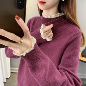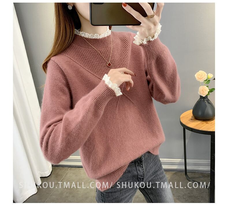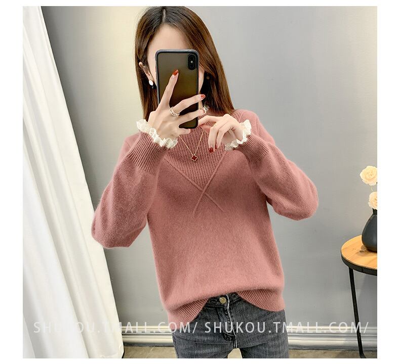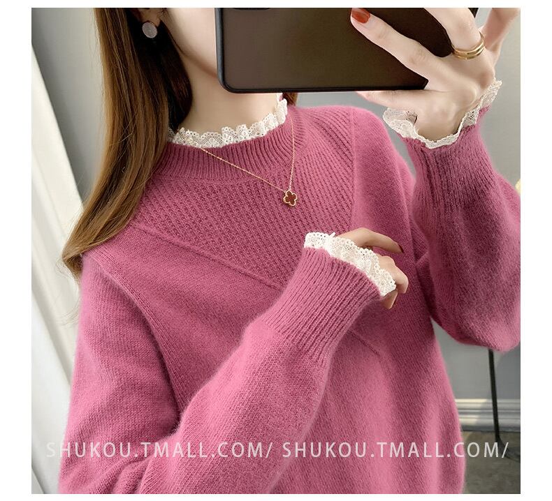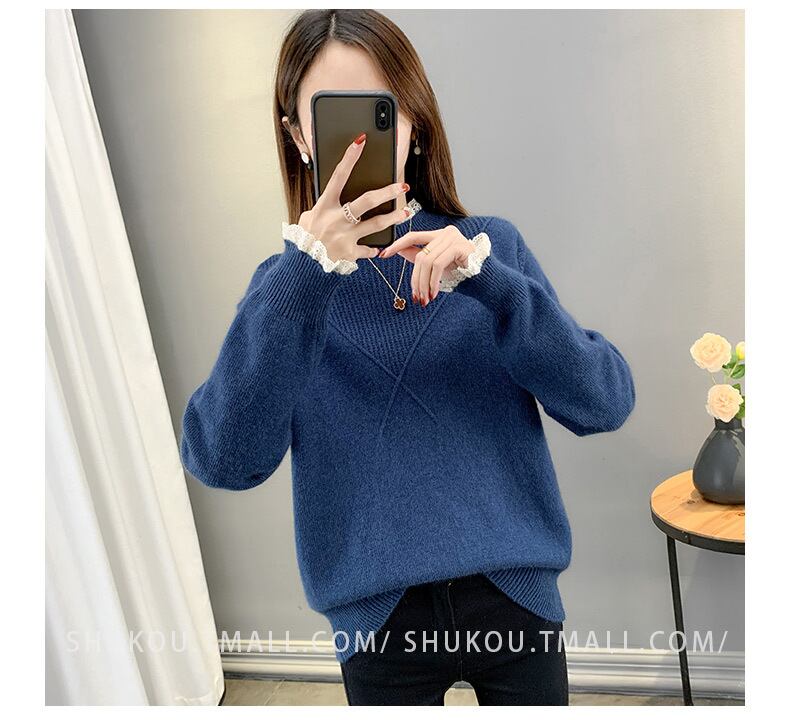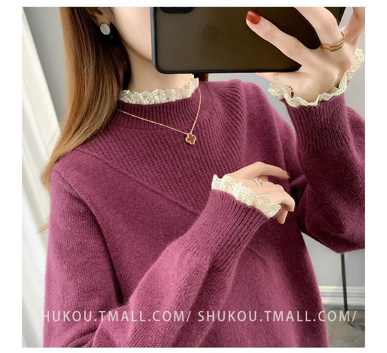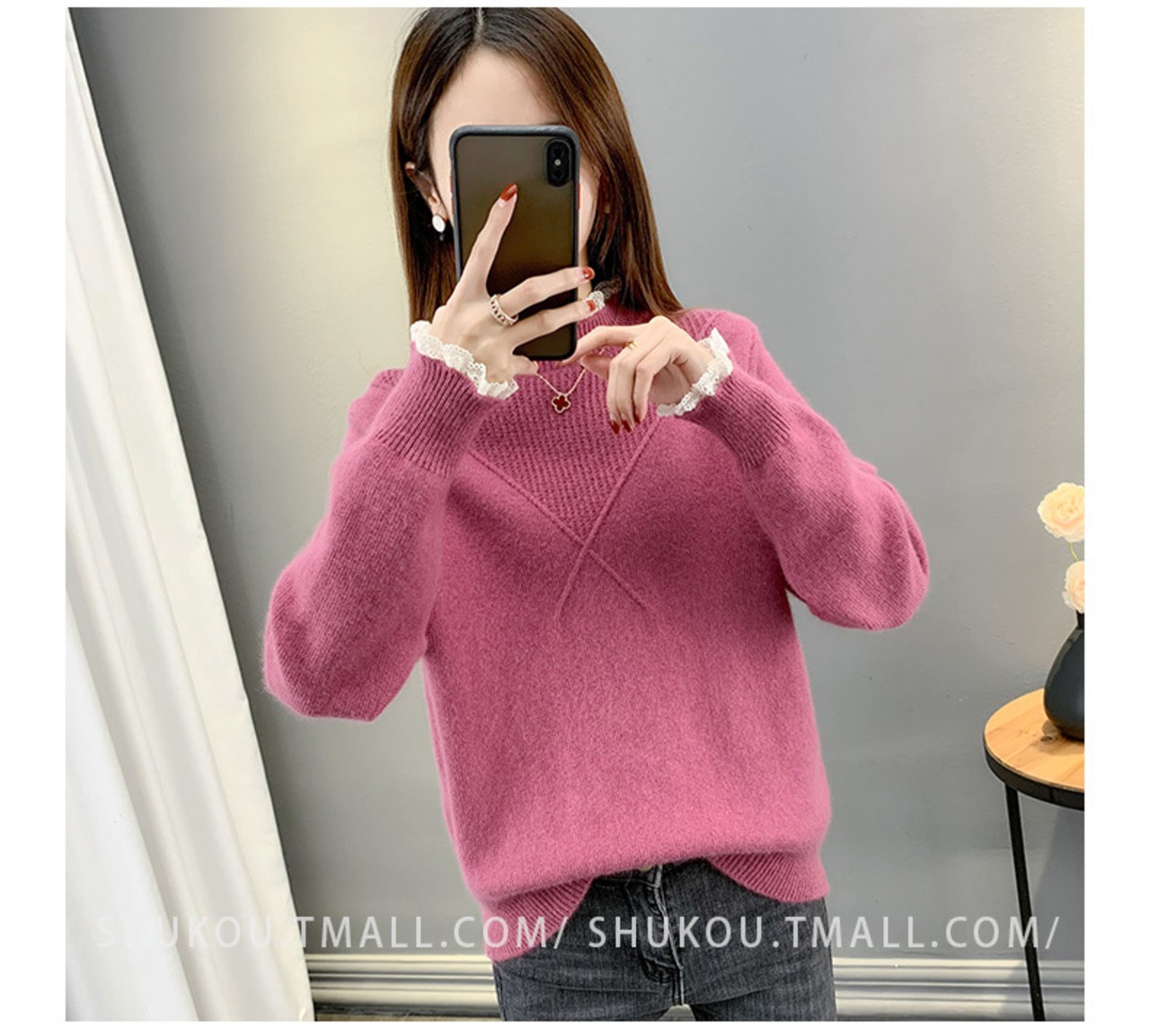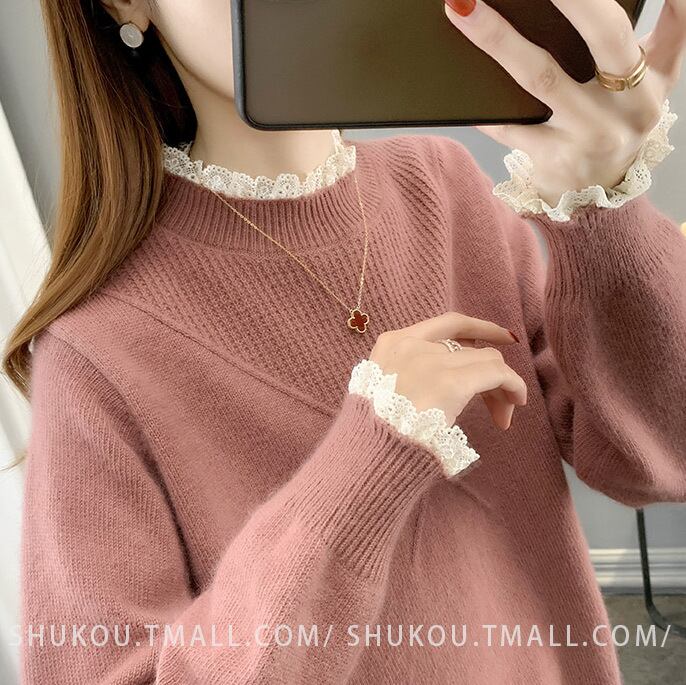 トップス ニットソー セーター ラウンドネック レースネック ワイド フリル ニット かわいい おしゃれ キュート ガーリー 無地 春 秋 冬 10代 20代 30代 レディース 女性用 学生 デート お出かけ 女子会 楽ちん モテ S M L XL ゆったり ホワイト レッド ベージュ ピンク