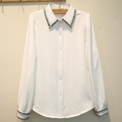トップス シャツ ブラウス 白シャツ 白トップス 袖あり 長袖 襟付き スタンダードカラー ストレート Iライン 前開き 大人可愛い きれいめ シンプル カジュアル 大人 上品 おしゃれ お洒落 大人女子 ガーリー エレガント モダン フェミニン 無地 春 秋 20代 30代 OL 通勤 学生 通学 デート お出かけ 女子会 普段使い 楽ちん モテ 定番 S M L XL 2XL 3XL 大きいサイズ 大きい 大きめ ビッグサイズ 白 ホワイト バイカラー モノトーン