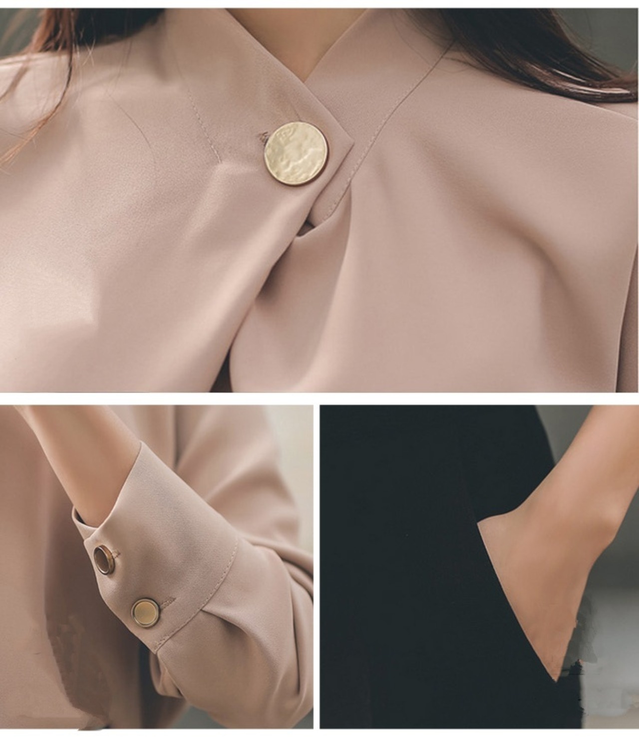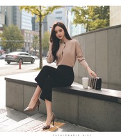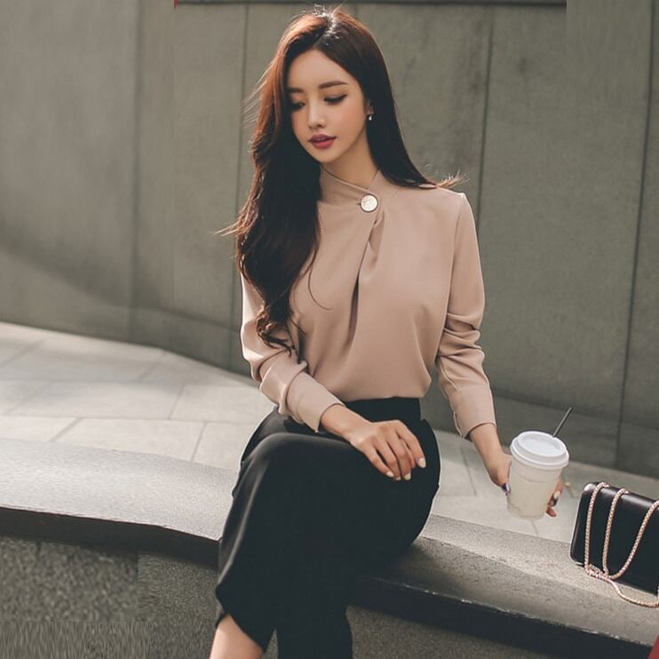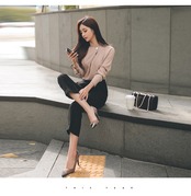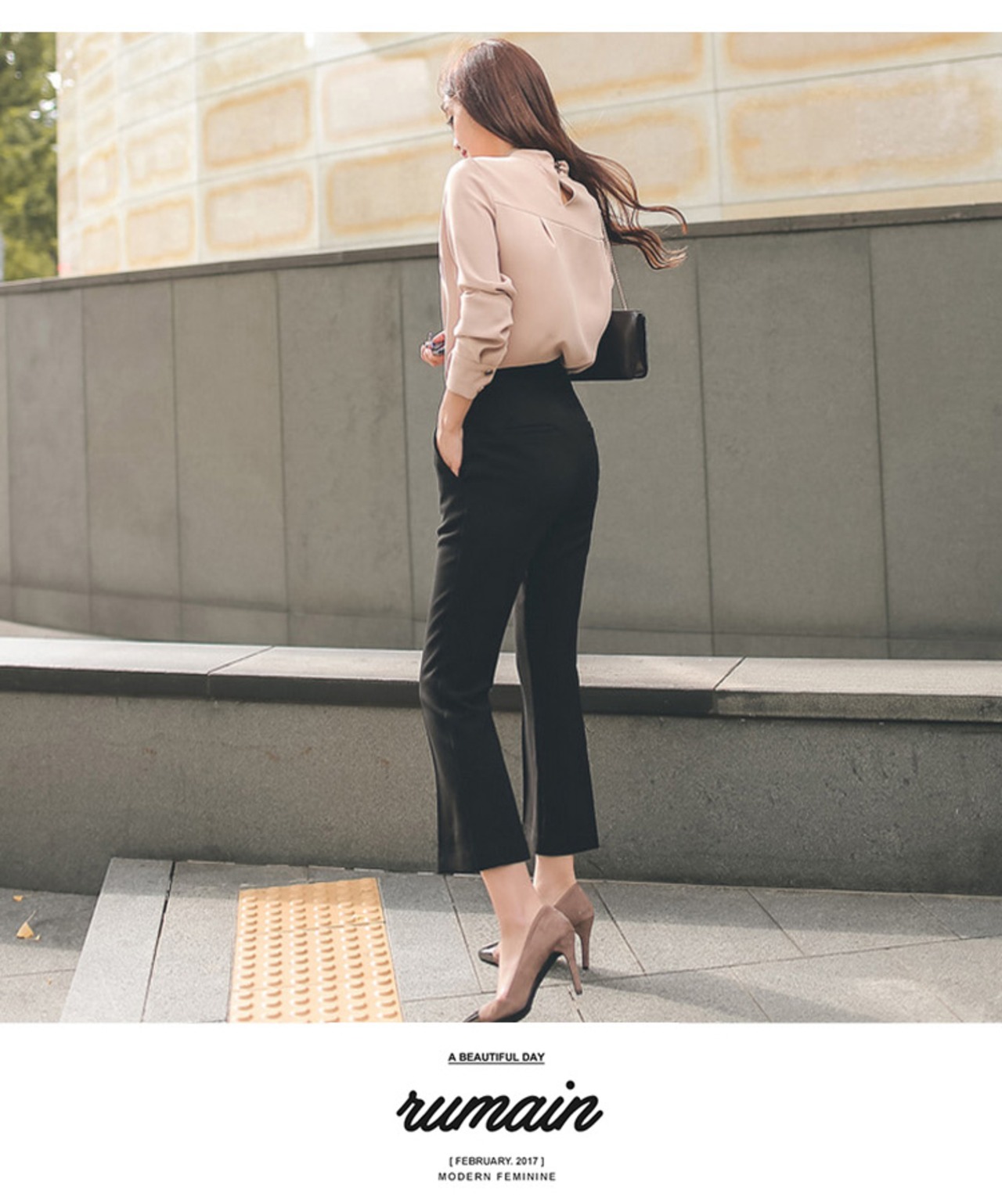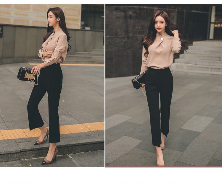 商品画像では、「ピンクのブラウスとブラックのパンツ」、「ホワイトのブラウスとブラウンのスカート」となっておりますが、どちらもブラウスとパンツのセットです。