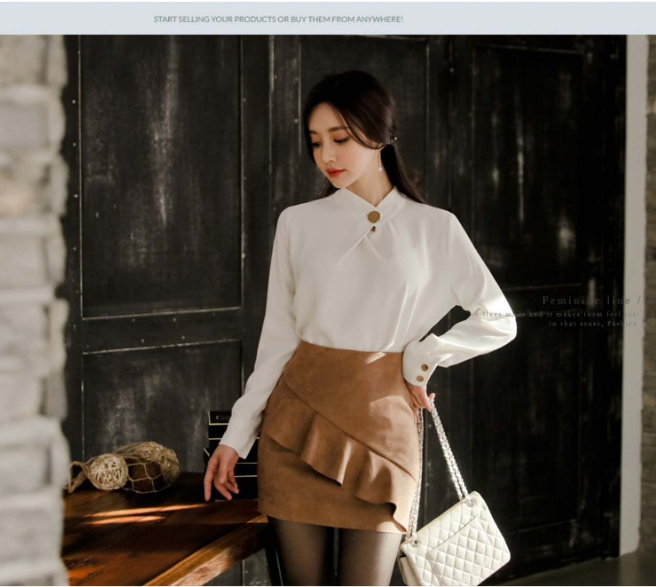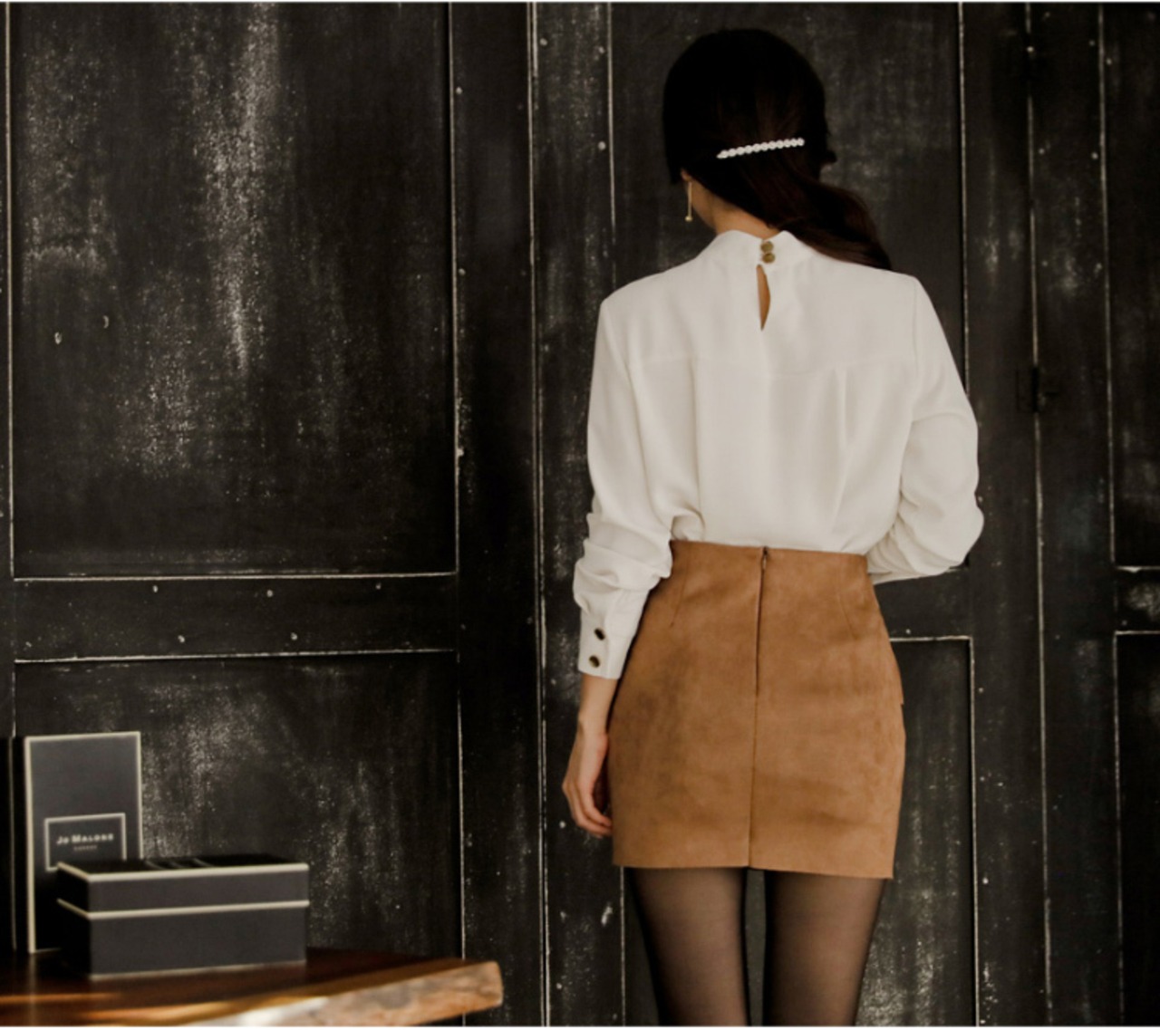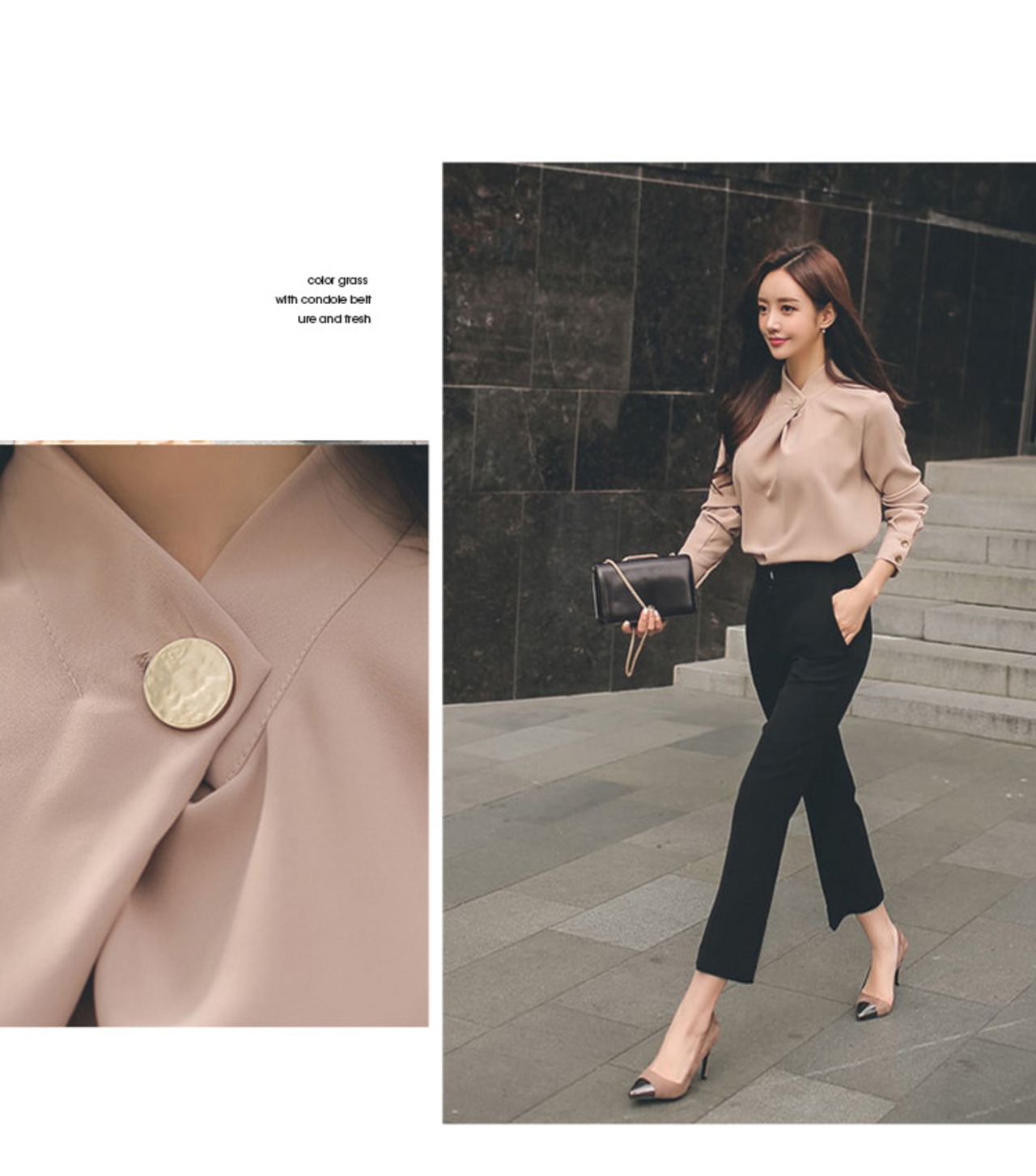 商品画像では、「ピンクのブラウスとブラックのパンツ」、「ホワイトのブラウスとブラウンのスカート」となっておりますが、どちらもブラウスとパンツのセットです。