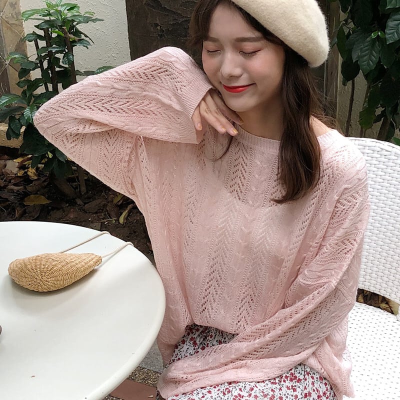 ゆったりとしたオーバーサイズが可愛いシースルーニット。