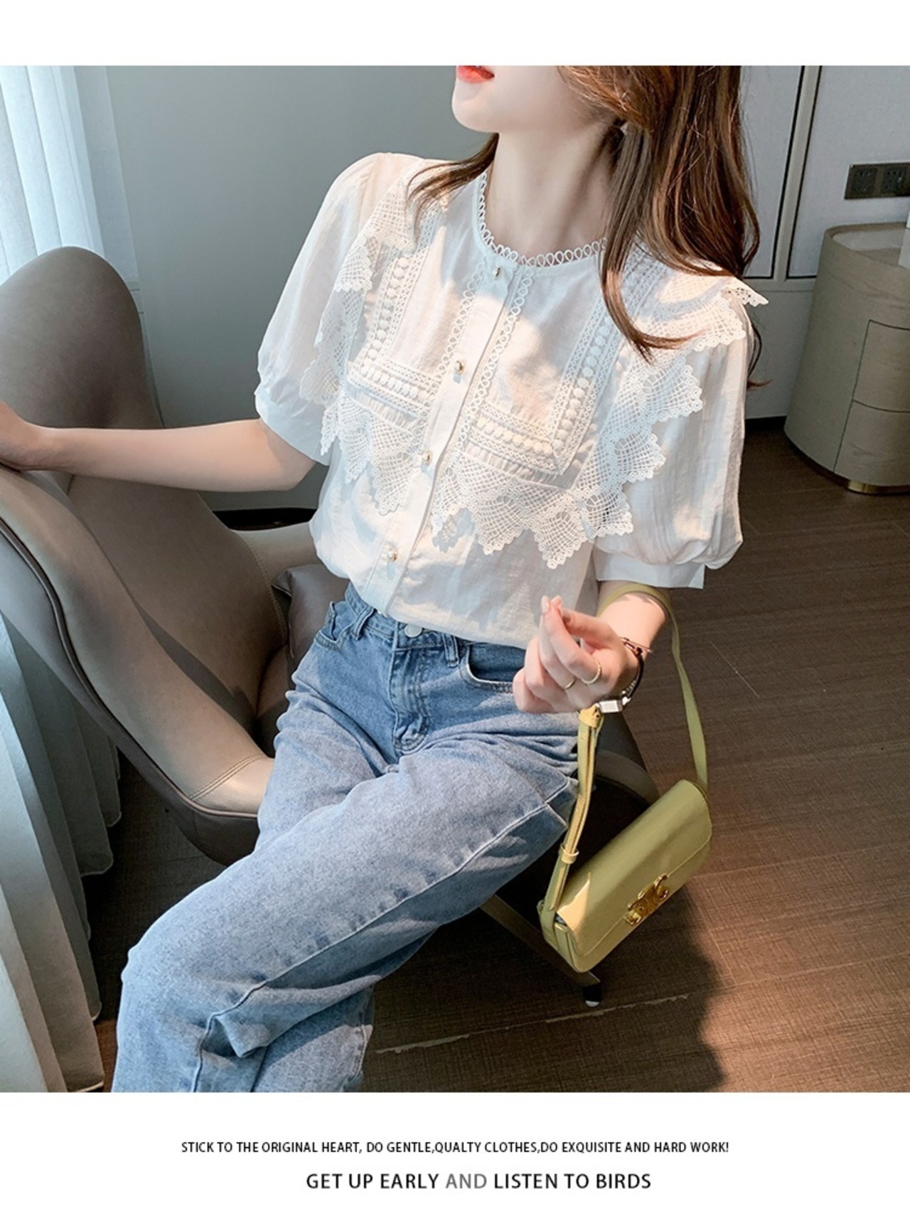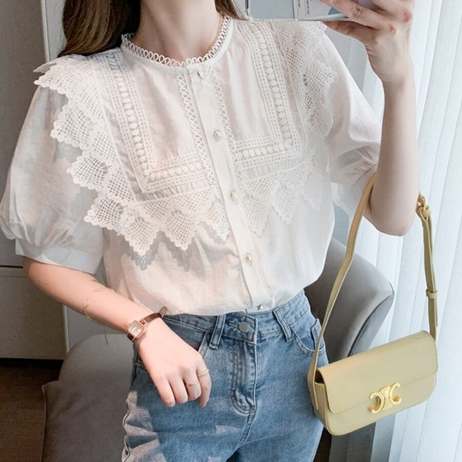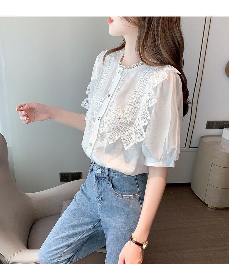 トップス Tシャツ シャツ ブラウス 白シャツ 白トップス 袖あり 半袖 クルーネック レース かわいい 大人可愛い きれいめ シンプル カジュアル 上品 おしゃれ お洒落 レトロ ラブリー キュート ガーリー エレガント フェミニン 無地 柄 春 夏 10代 20代 レディース 女性用 学生 通学 デート お出かけ 公園デビュー 女子会 休日 着回し 普段使い モテ S M L XL 2XL 白 ホワイト