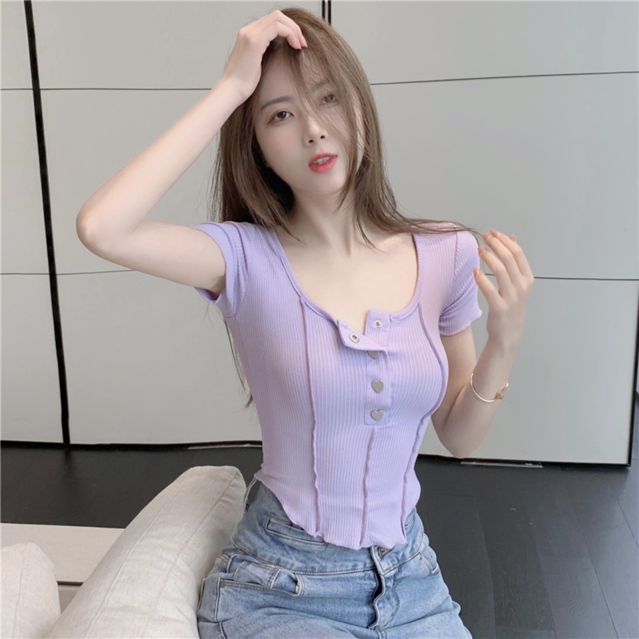 トップス Tシャツ シャツ カットソー プルオーバー 袖あり 半袖 Uネック ラウンドネック ヘンリーネック スリム タイト 細身 透け感 伸縮性 薄手 かわいい 大人可愛い シンプル カジュアル 大人 上品 おしゃれ お洒落 こなれ感 個性的 クール モード系 セクシー 抜け感 無地 春 夏 10代 20代 レディース 女性用 学生 デート お出かけ 休日 着回し 普段使い お揃い ファッション スタイル モテ S M L ホワイト パープル