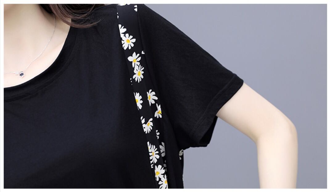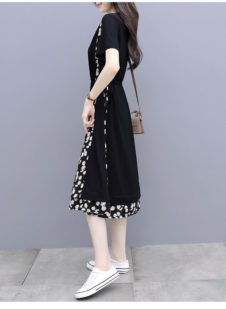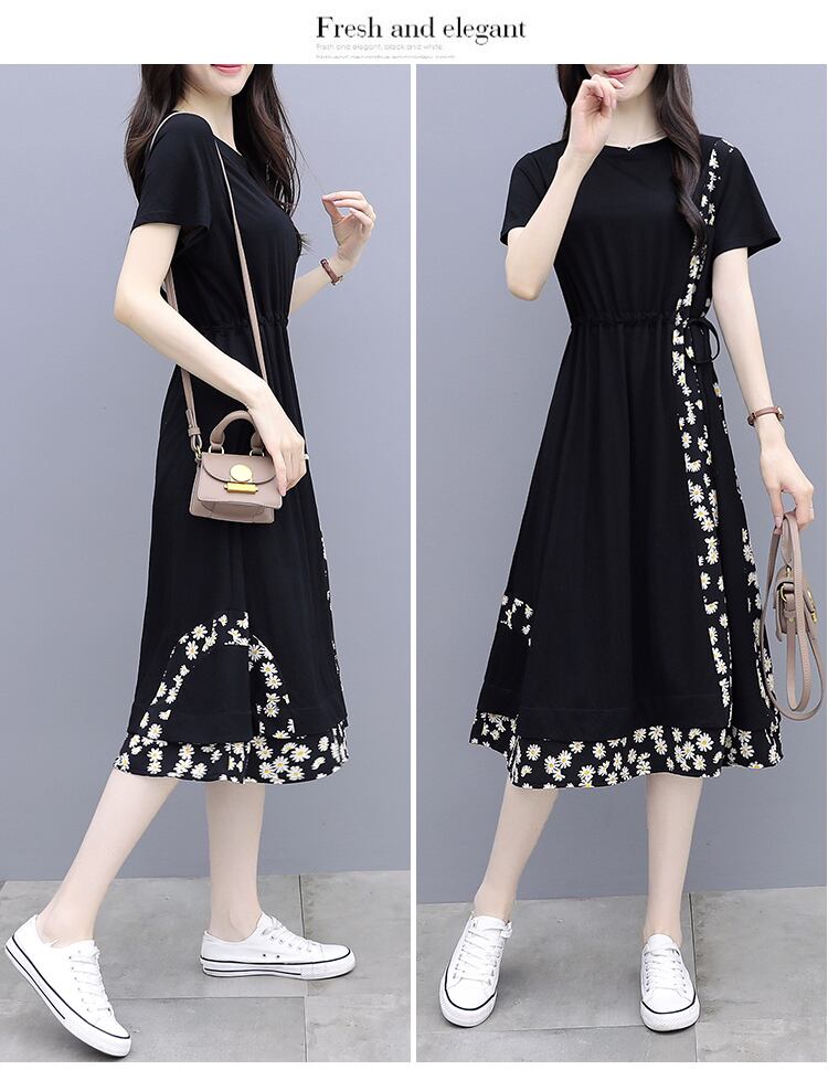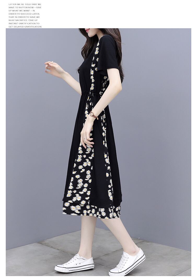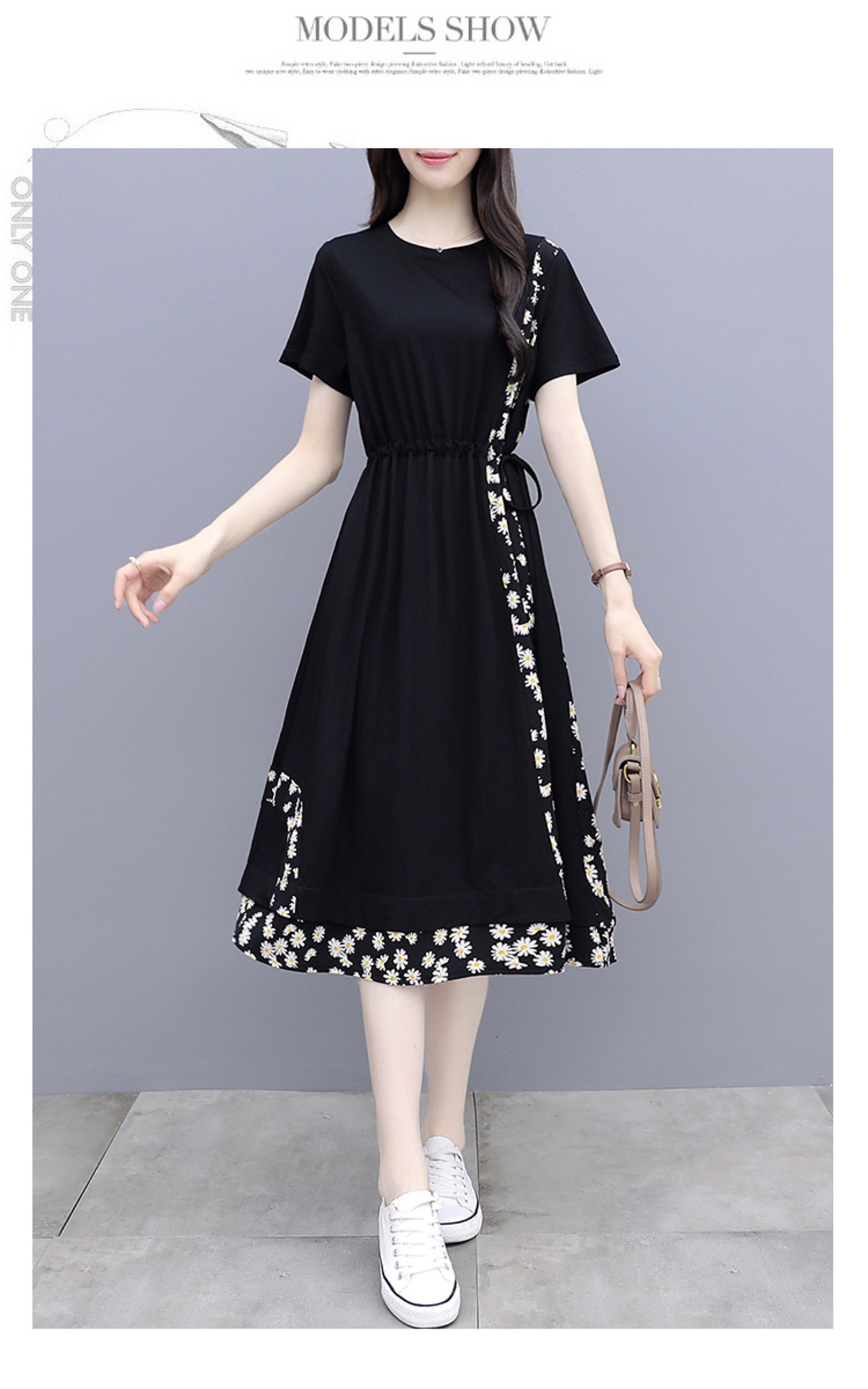 大部分が無地でシンプルですが、サイドと裾周りにあしらわれた花柄が大人可愛く、女性らしさを演出します。