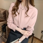 ブラウス 長袖 ボウタイ 無地 大人可愛い きれいめ シンプル 大人 上品 おしゃれ こなれ感 キュート フェミニン とろみ感 抜け感 ナチュラル 春 秋 冬 20代 30代 40代 50代 レディース オフィス ビジネス OL 通勤 学生 デート お出かけ 女子会 リモート会議 普段使い 華奢見え コーデ モテ きちんと感 ピンク ニュアンスカラー