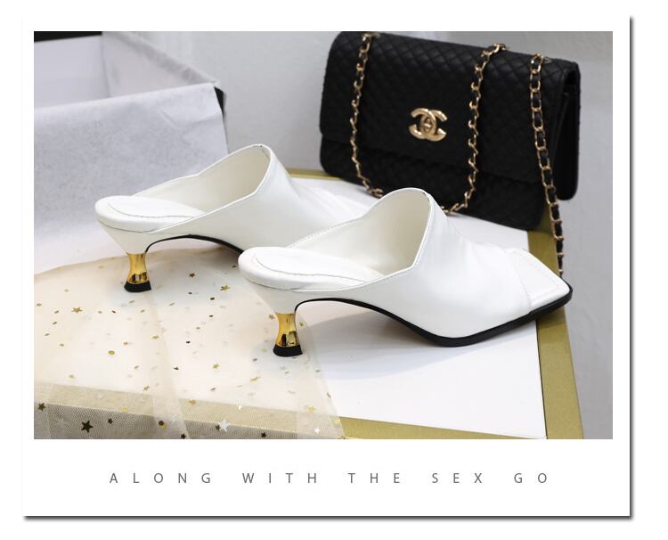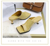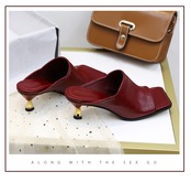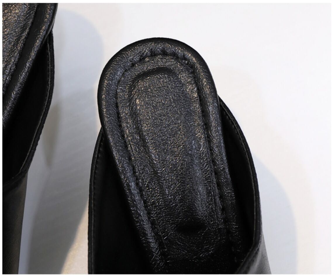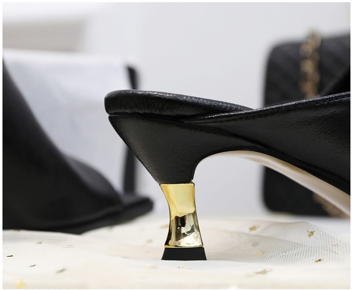 かかとがないので履きやすく、歩きやすいミドルヒールで楽ちんなミュールです。