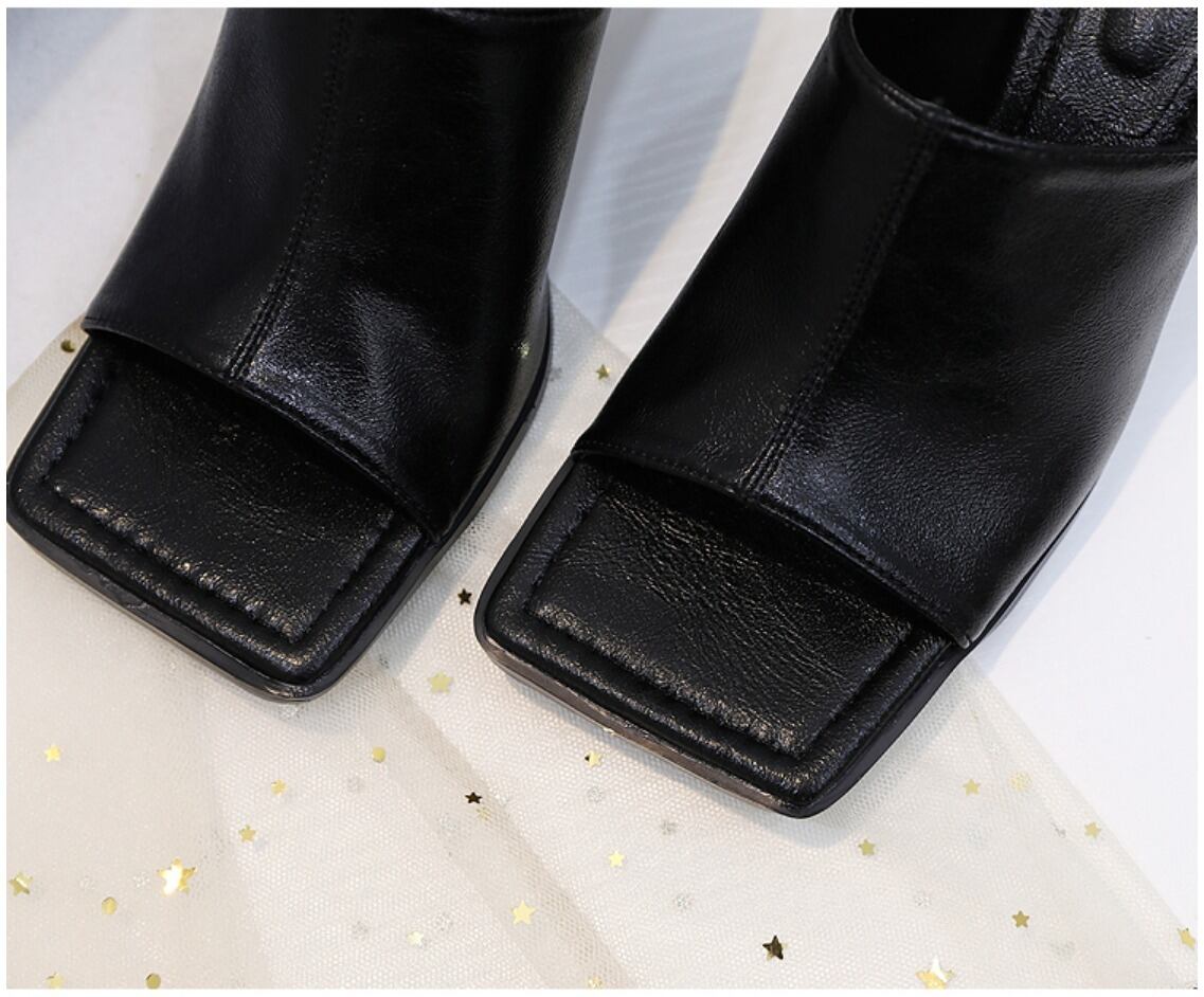 スクエアトゥがモダンで大人っぽい印象を演出します。