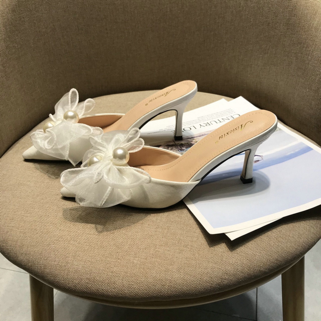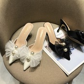 シューズ 靴 くつ クツ サンダル ミュール レディースシューズ ヒール 7cmヒール かかと無し ルイヒール フレンチヒール ポインテッドトゥ リボン 履きやすい パール キラキラ かわいい 大人可愛い きれいめ シンプル カジュアル 大人 上品 おしゃれ お洒落 エレガント きちんと感 ラブリー キュート 大人っぽい 女っぽ ラフ クール 存在感 こなれ感 抜け感 無地 春 夏 10代 20代 30代 レディース 女性用 デート お出かけ 女子会 休日 デイリー 普段使い 高見え 格上げ モテ