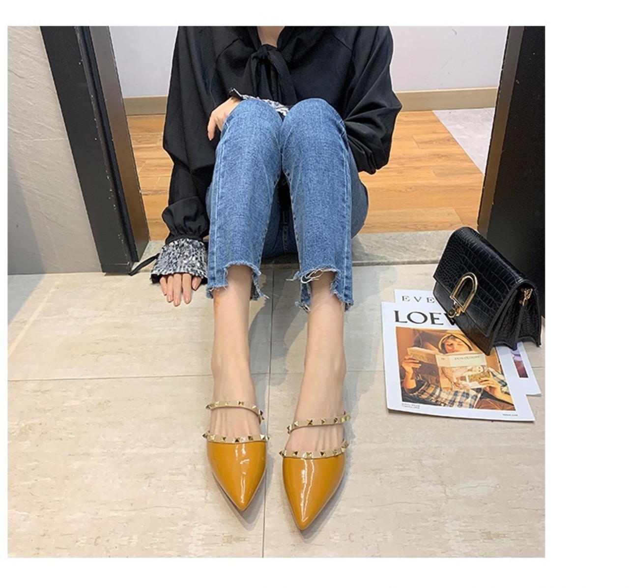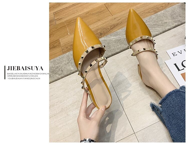 スタッズがあしらわれたポインテッドトゥサンダル。