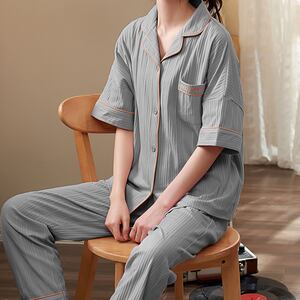 ルームウェア パジャマ 上下セット 部屋着 寝巻き ナイトウェア 五分袖 襟付き ポケット 前開き ウエストゴム リブ 大きめサイズ 綿 薄手 パイピング 大人可愛い きれいめ シンプル カジュアル 上品 大人女子 こなれ感 ラフ 抜け感 ゆったり ナチュラル 春 夏 10代 20代 30代 40代 50代 レディース お泊まり 休日 入院中 楽ちん リラックス 定番 ブルー くすみカラー