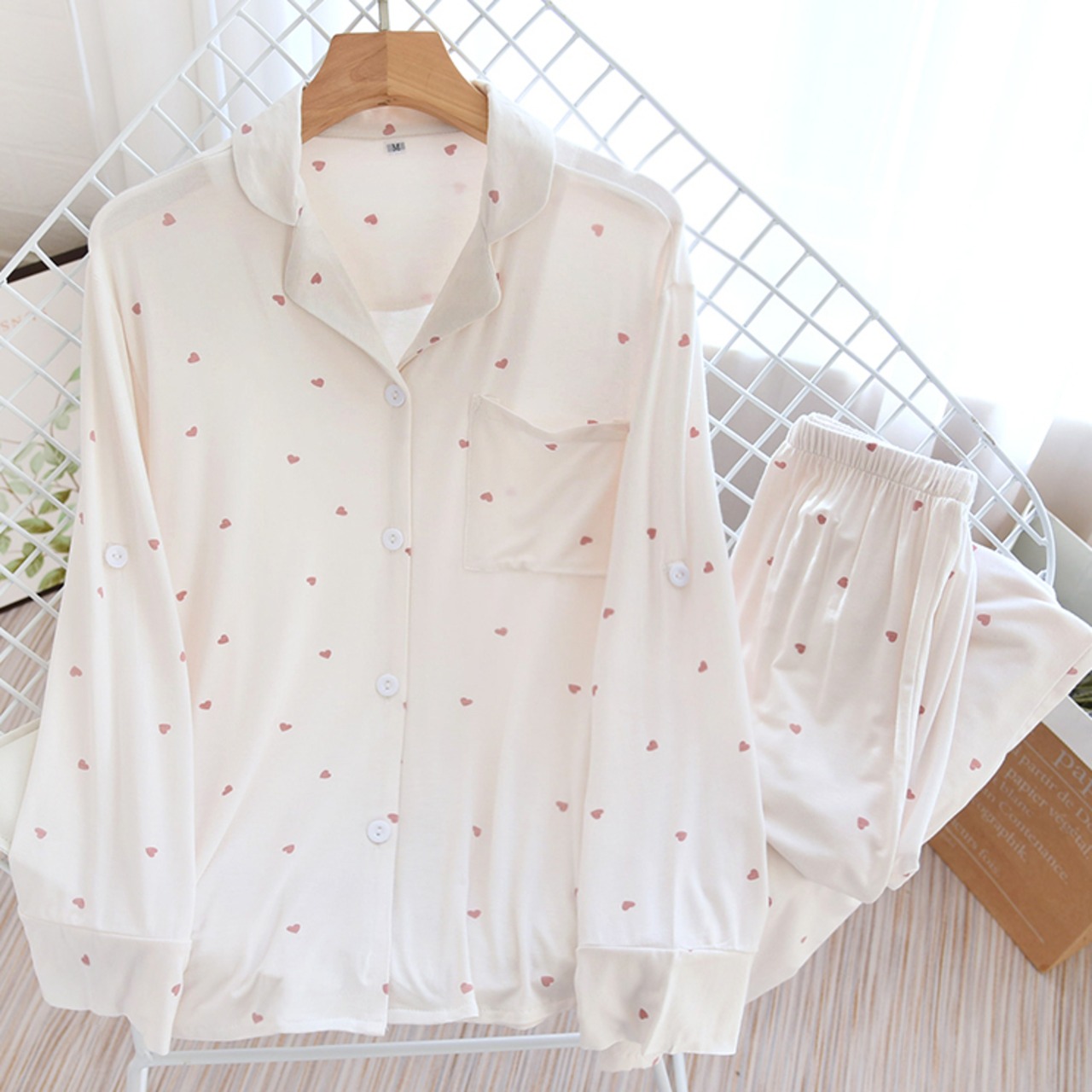 さりげなくハートが散りばめられたルームウェア上下セットです♡