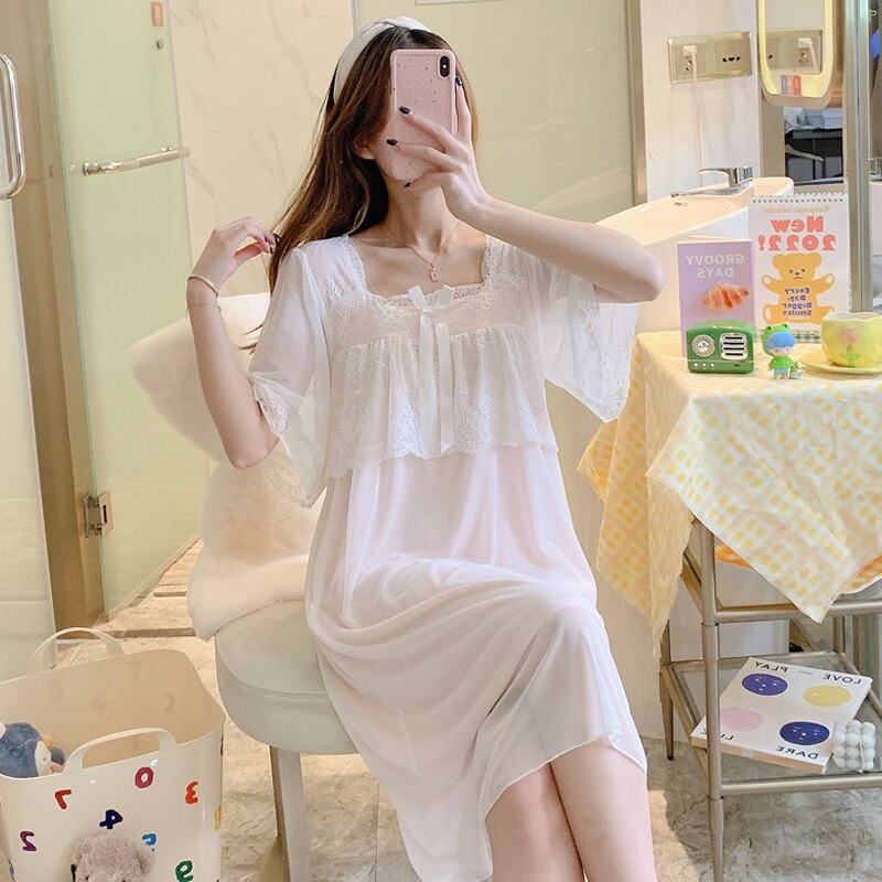 ルームウェア パジャマ ネグリジェ ミモレ ミモレ丈 スクエアネック セミフレア Aライン レース 刺繍 チュール シフォン フリル リボン 透け感 シースルー おしゃれ お洒落 ラブリー キュート ガーリー セクシー エレガント とろみ感 抜け感 春 夏 秋 冬 オールシーズン シーズンレス 10代 20代 30代 40代 60代 レディース 女性用 ママ マタニティ モテ 体系カバー プレゼント ギフト インスタ映え M L XL 白 ホワイト ピンク