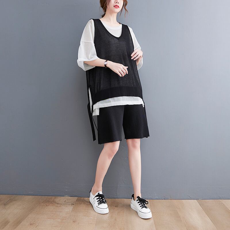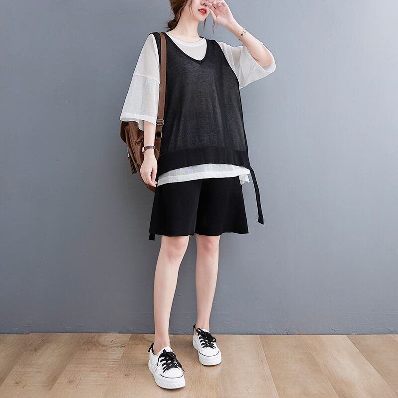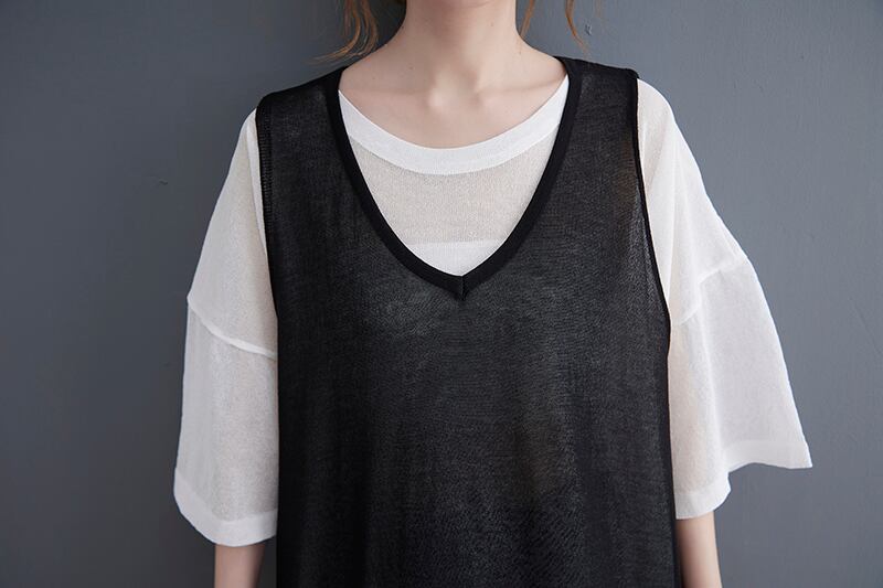 トップス ニットソー ベスト ノースリーブ Uネック ワイド 透け感 シースルー 伸縮性 サマーニット 大人可愛い きれいめ シンプル カジュアル 大人 おしゃれ お洒落 かっこいい 大人女子 こなれ感 ラフ ルーズ とろみ感 抜け感 春 夏 2022 10代 20代 30代 40代 50代 60代 レディース 女性用 ママ マタニティ 学生 通学 デート お出かけ 女子会 休日 アウトドア 重ね着 ファッション コーデ スタイル 定番 トレンド 流行 M L 黒 ブラック